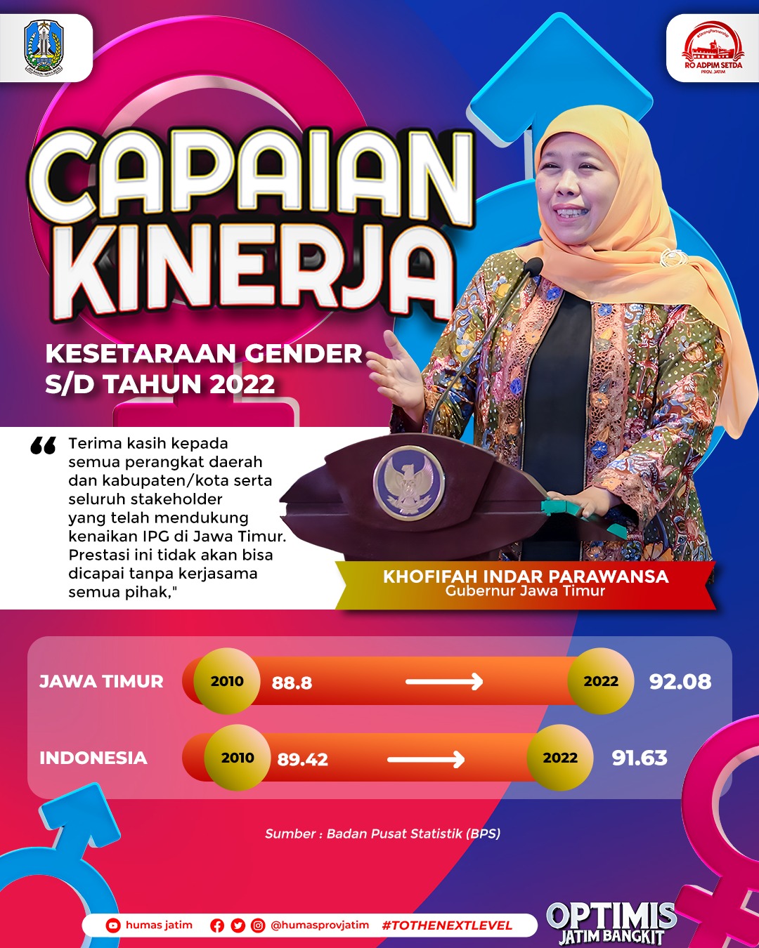 Angka Indeks Pembangunan Gender Jatim Tembus 92,08