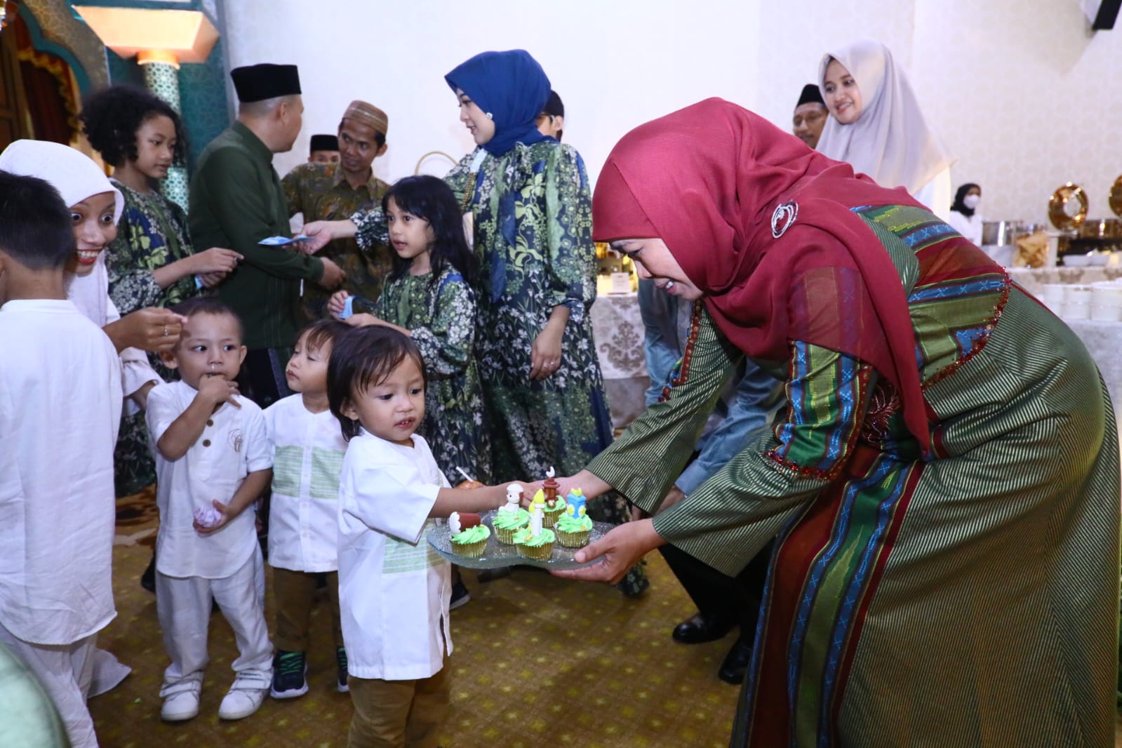 Bersama sang Putra Kedua Jalaluddin Mannagalli Parawansa, senyum hangat menyapa masyarakat tak ada habisnya. Dirinya kemudian juga memberikan hadiah lebaran khusus untuk anak-anak yang turut hadir.
