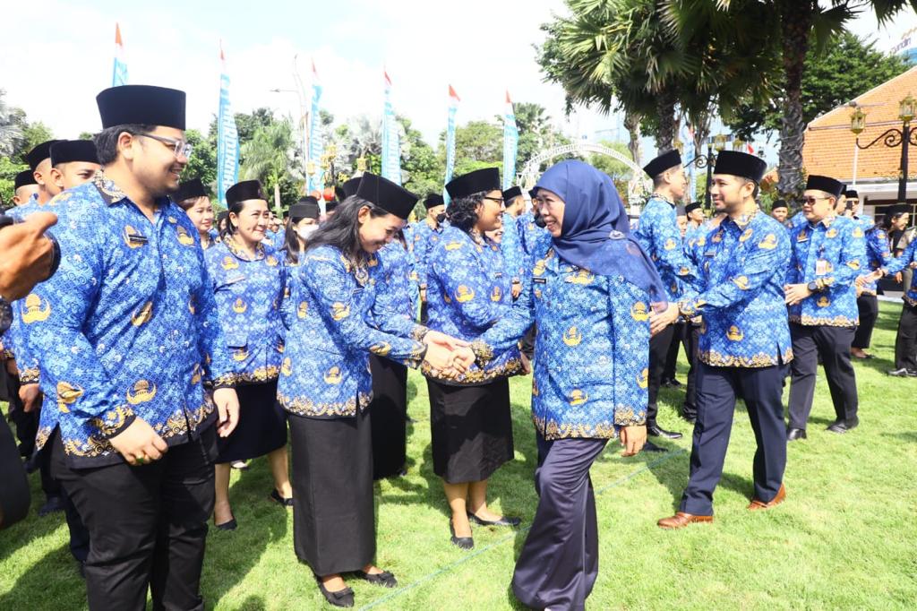 Gubernur Jawa Timur Khofifah Indar Parawansa mengambil menekankan pentingnya core values ASN ‘BerAKHLAK’ yang meliputi Berorientasi Pelayanan, Akuntabel, Kompeten, Harmonis, Loyal, Adaptif, dan Kolaboratif.