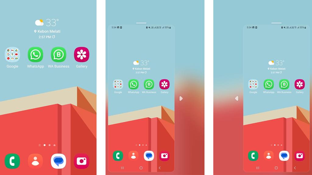 Dengan layar yang cukup luas, Samsung Galaxy A14 idealnya digunakan menggunakan dua tangan. Namun, tidak perlu khawatir, karena Samsung memiliki fitur Mode Satu Tangan, yang jika diaktifkan maka secara otomatis akan menyusutkan ukuran tampilan layar. Posisi layer yang sudah menyusut juga bisa digeser ke pojok kanan atau kiri bawah.