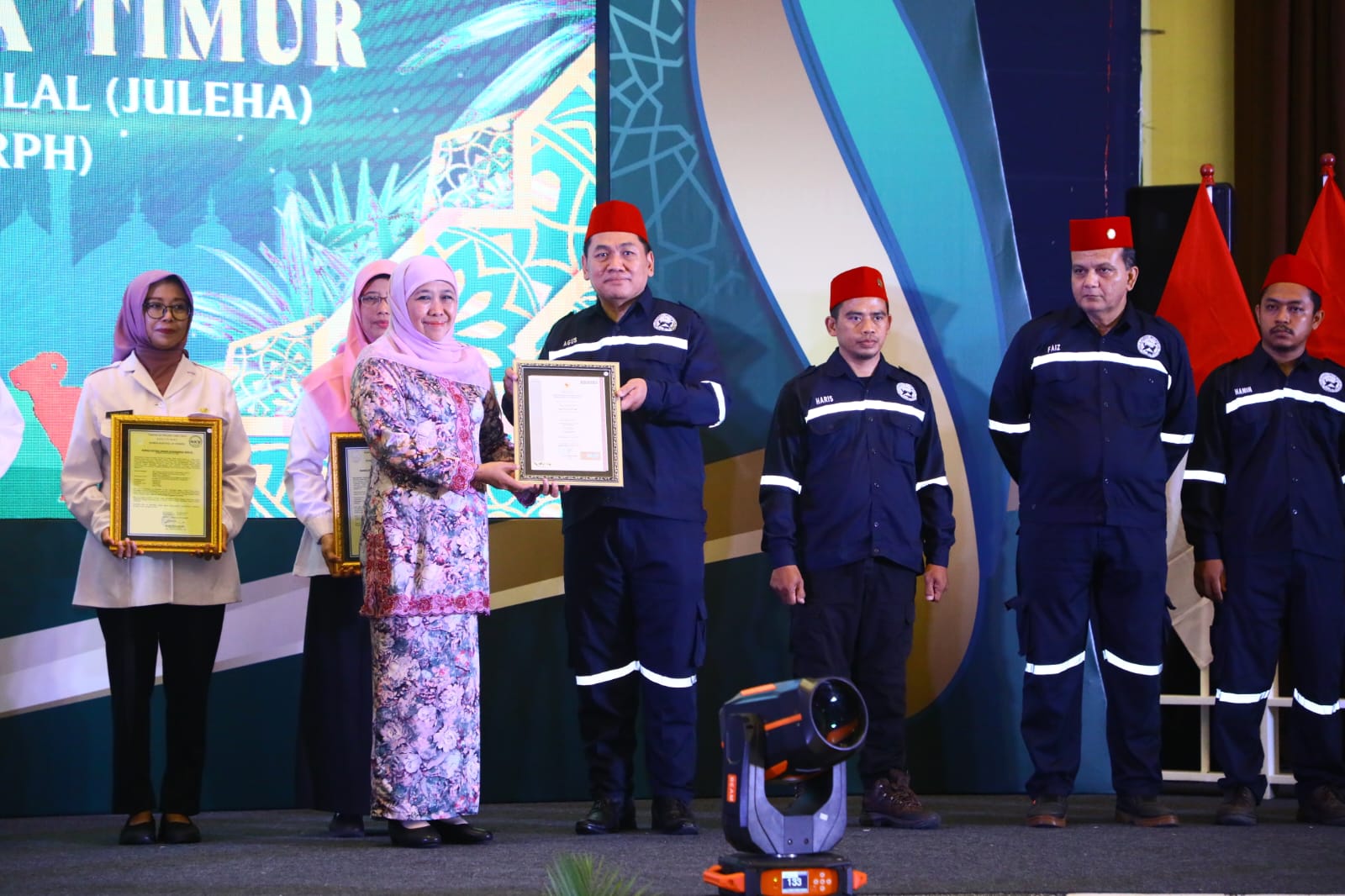 Lalu juga dilakukan penyerahan sertifikat kompetensi Juleha dan Penyelia Halal, Sertifikat NKV (Nomor Kontrol Veteriner) RPH (Rumah Potong Hewan) yang secara simbolis diserahkan oleh Gubernur Khofifah kepada 15 penerima.