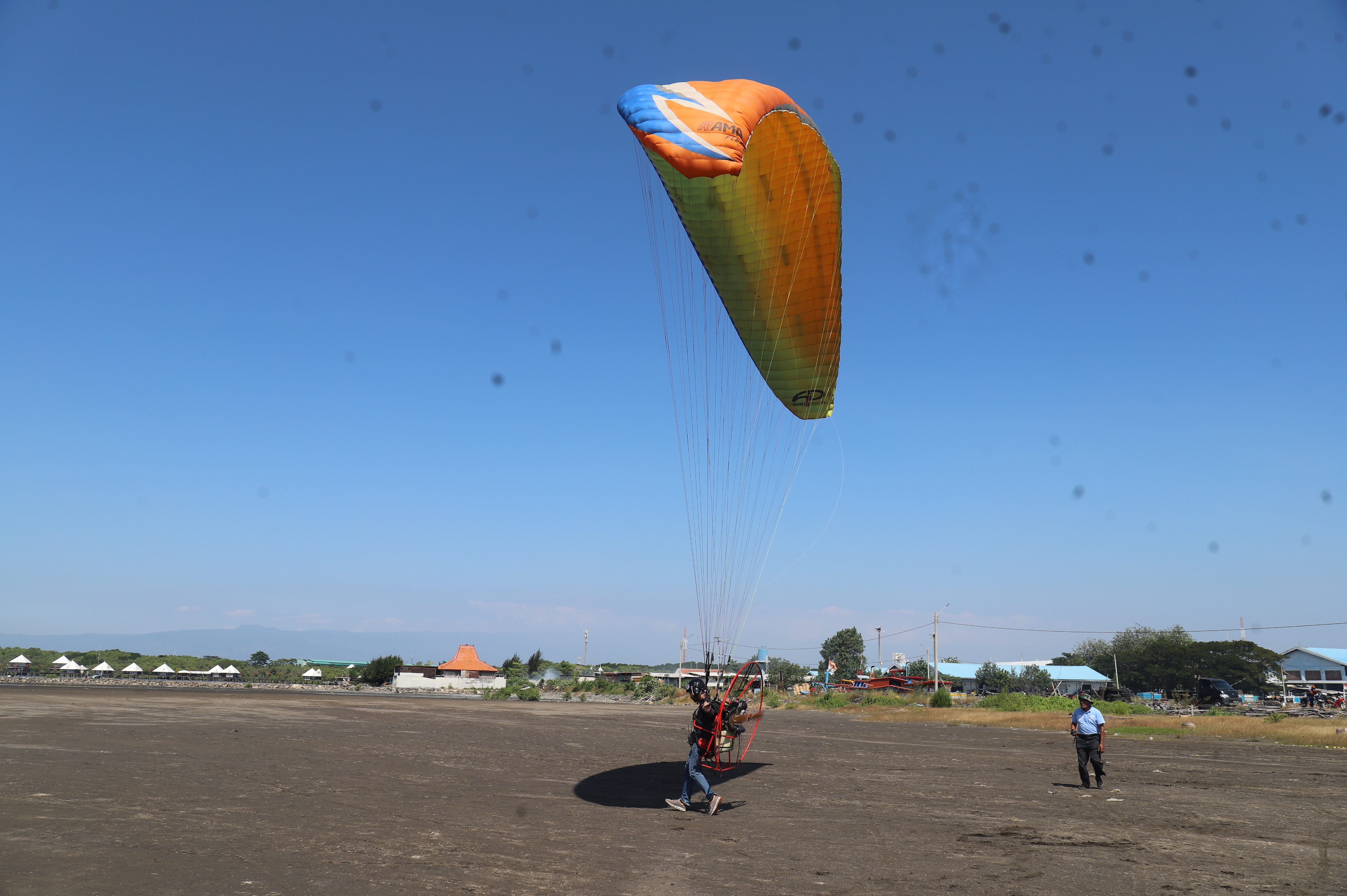 Di Pantai Mayangan, M. Nabil melihat langsung kondisi peralatan yang digunakan atlet-atlet paramotor.