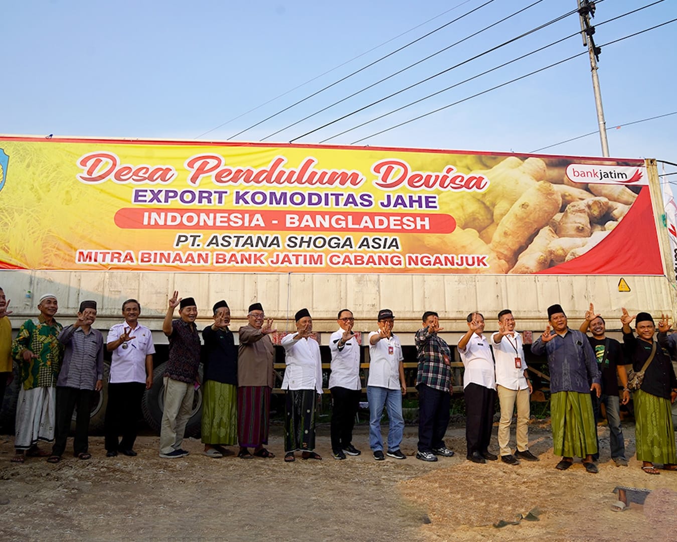 KANALSATU - PT Bank Pembangunan Daerah Jawa Timur Tbk atau Bank Jatim kembali menunjukkan komitmennya mendukung ekspor dari Jawa Timur. Kini Bank Jatim memberikan supportnya kepada eksporter jahe asal Nganjuk, PT Astana Shoga Asia ke Bangladesh.