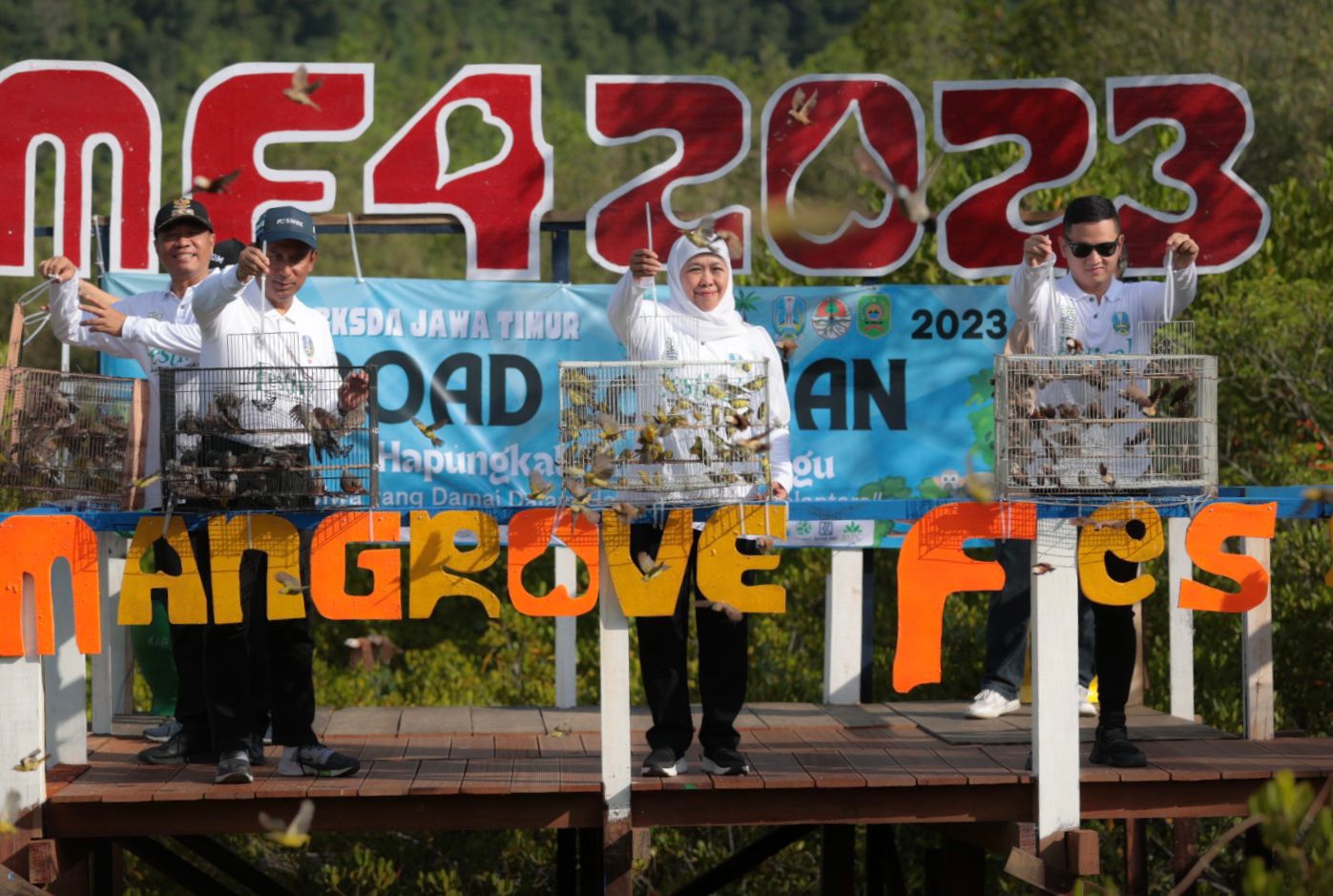 "Kita akan memaksimalkan hilirisasi mangrove ketika ekosistem mangrove sudah bisa terbentuk. Dengan pengembangan dari hulu ke hilir kita harap ekonomi masyarakat bisa terangkat dengan tetap memberikan daya dukung alam dan lingkungan,” ungkap Gubernur Jawa Timur Khofifah Indar Parawansa saat membuka Festival Mangrove ke-4 di Hutan Mangrove Pancer Cengkrong Kab. Trenggalek, Sabtu (27/5/2023).