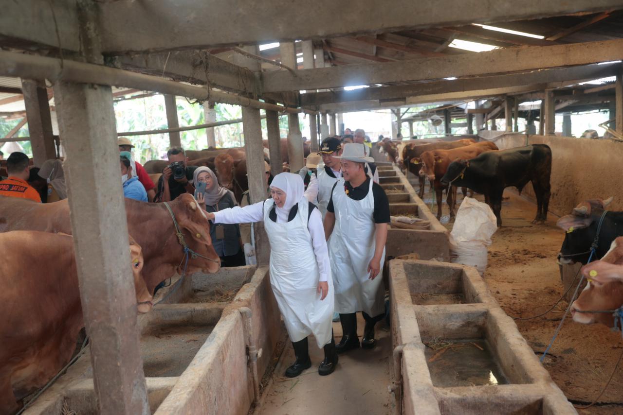 Di momen jelang Idul Adha ini, Gubernur Khofifah juga memastikan bahwa Hewan Ternak di Jatim dalam kondisi surplus baik jenis sapi, kambing, domba maupun kerbau.
