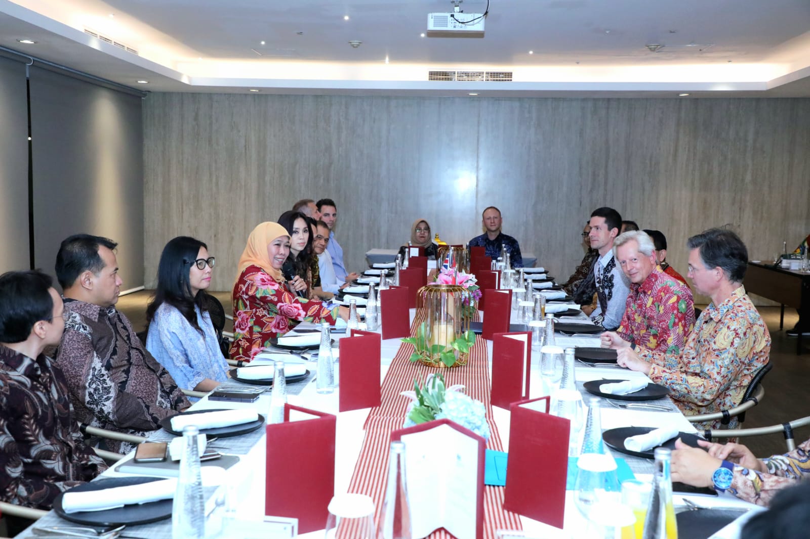 KANALSATU - Gubernur Jawa Timur Khofifah Indar Parawansa melakukan pertemuan dengan The UK Prime Minister's Trade Envoy to Indonesia, Malaysia, Philippines, and the ASEAN Economic Community, Richard Graham MP di Surabaya, Selasa (6/6/2023). Pada kesempatan tersebut, Gubernur Khofifah mendiskusikan potensi kerjasama Britania Raya dengan Jawa Timur dalam bidang kesehatan, pendidikan, transportasi serta energi baru terbarukan.