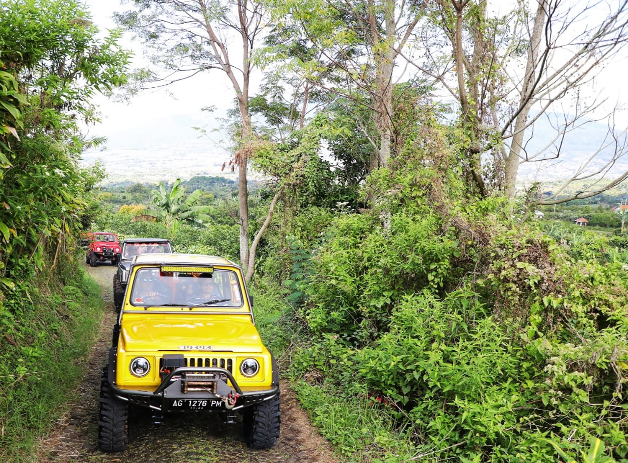 Bukan sembarangan, Bukit Jengkoang ini tak hanya menawarkan pemandangan alam yang indah, tapi juga memiliki wisata petualangan yang seru. Dengan menggunakan mobil jeep terbuka, Gubernur Khofifah mengajak anak, cucu dan keluarga untuk off road menuju Bukit Jengkoang.