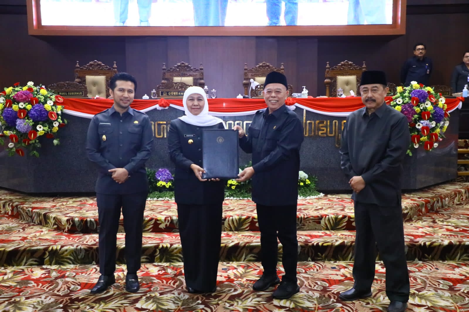 Gubernur Jawa Timur Khofifah Indar Parawansa, Ketua DPRD Jatim Kusnadi, dan Wakil Ketua DPRD Jatim Achmad Iskandar bersama-sama menandatangani persetujuan Raperda untuk selanjutnya dilakukan konsultasi ke Kementerian Dalam Negeri selanjutnya menjadi Perda. Disetujuinya raperda ini diwujudkan dalam Surat Keterangan (SK) DPRD Jatim nomor: 188/0/KPJSDPRD/050/2023.