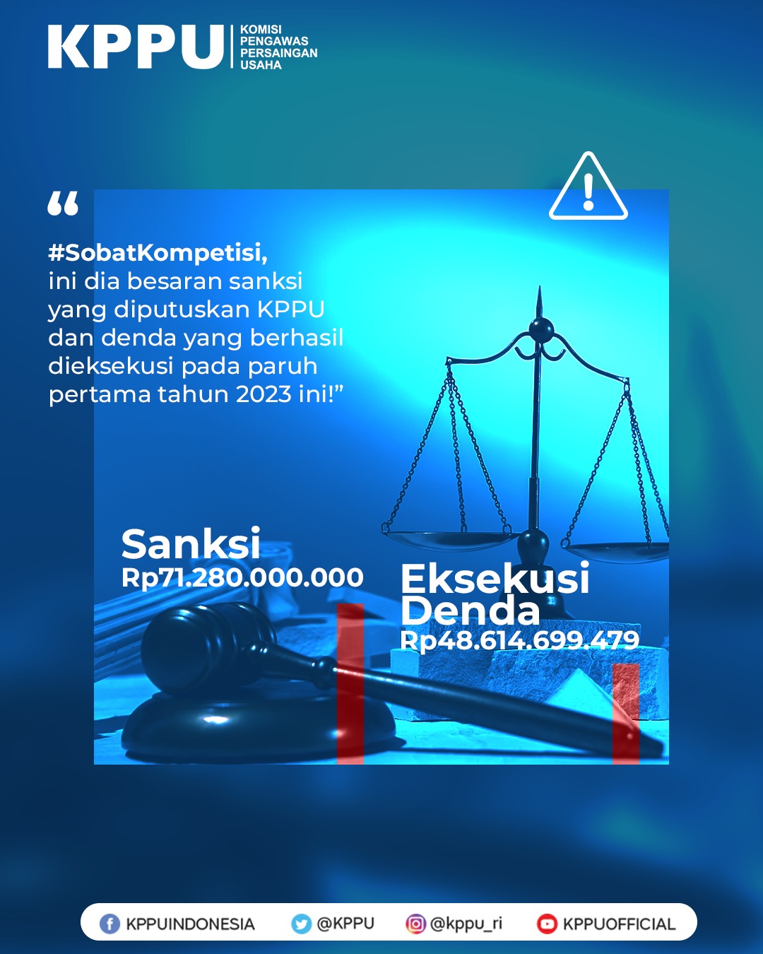 Sementara itu pada semester yang sama, KPPU berhasil melakukan eksekusi atas denda dari berbagai putusannya yang berkekuatan hukum tetap hingga mencapai Rp 48.614.699.479.