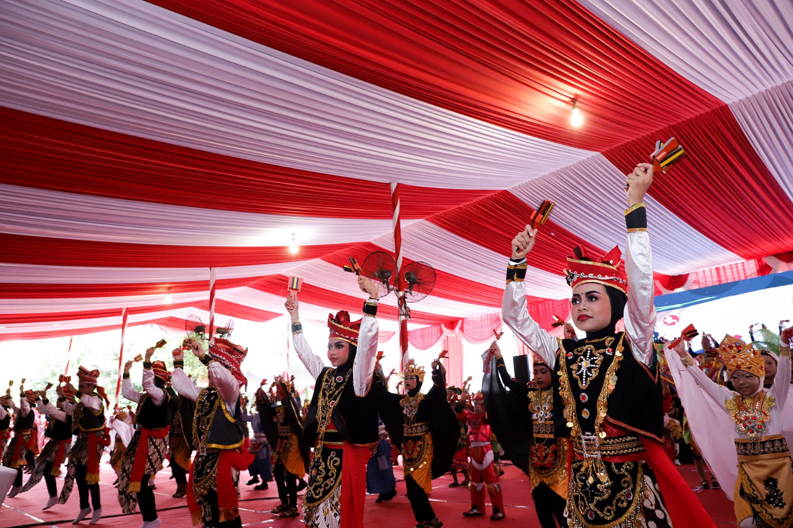 KANALSATU - Dalam rangka merayakan 25 tahun hubungan kerjasama sister city antara Kota Surabaya dengan Kota Kochi Jepang, Pemerintah Kota (Pemkot) Surabaya bersama Pemerintah Kochi Jepang menggelar Festival Remo Yosakoi, di Halaman Balai Budaya Kota Surabaya, Minggu (16/7/2023).