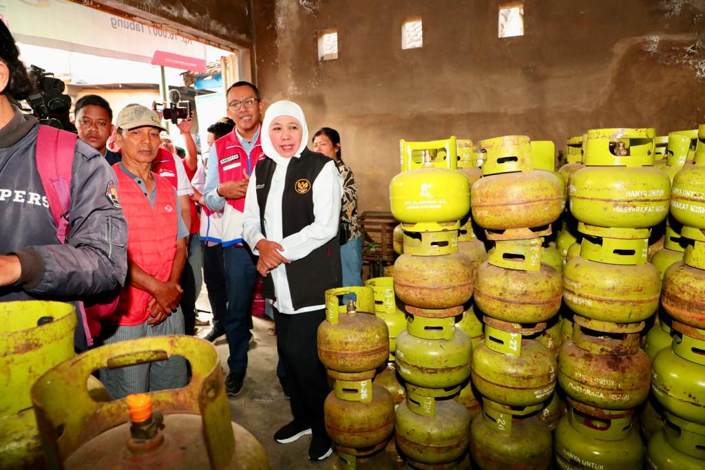 KANALSATU - Gubernur Jawa Timur Khofifah Indar Parawansa meninjau sejumlah pangkalan dan agen tabung gas Liquefied Petroleum Gas (LPG) 3 kg di Kota Batu, Sabtu (29/7/2023) sore. Peninjauan dilakukan di Pangkalan LPG milik Siadi di Jl Lesti Kelurahan Ngaglik dan Pangkalan UD. Wijaya Kusuma Jl. Diponegoro, Kelurahan Sisir, Kota Batu.