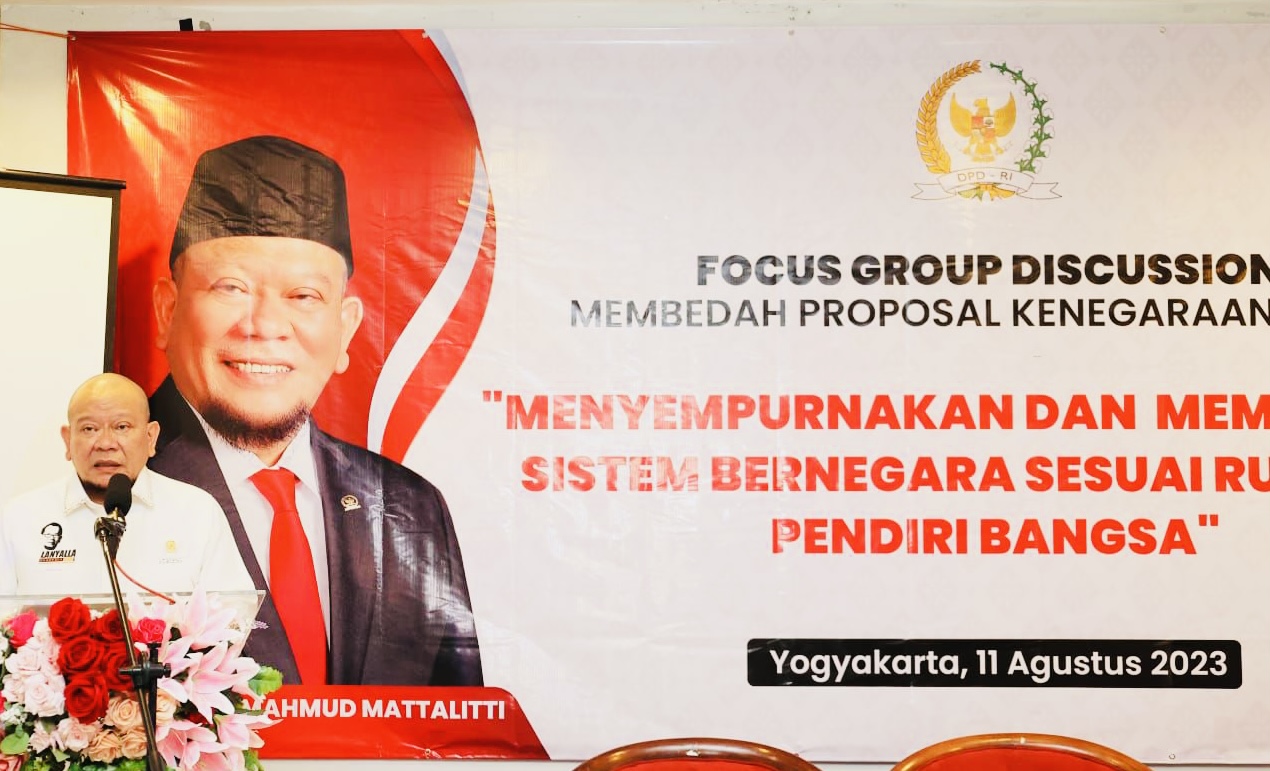 Dukungan dan masukan itu terungkap pada Fokus Grup Diskusi (FGD) Membedah Proposal Kenegaraan DPD RI dengan tema 'Menyempurnakan dan Memperkuat Sistem Bernegara Sesuai Rumusan Pendiri Bangsa', yang diselenggarakan di UC Resto, Komplek UGM Yogyakarta, Jumat (11/8/2023).