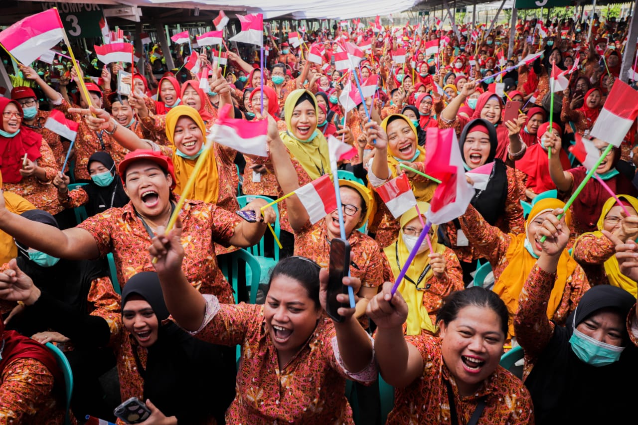 KANALSATU - Gubernur Jawa Timur Khofifah Indar Parawansa bergembira melihat banyak perempuan yang sejahtera dan menjadi tulang punggung keluarga.