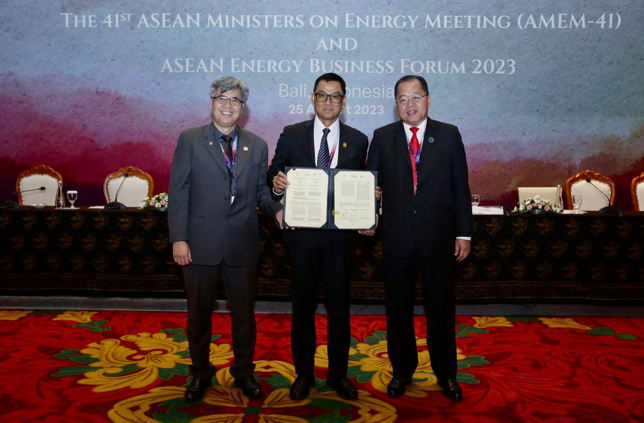 Kolaborasi tiga perusahaan listrik dan organisasi ASEAN ini direalisasikan dengan penandatanganan Momerandum of Understanding (MoU) pada salah satu rangkaian acara ASEAN Ministers on Energy Meeting (AMEM) ke-41 dan ASEAN Energy Business Forum (AEBF) di Bali, Jumat (25/8/2023).