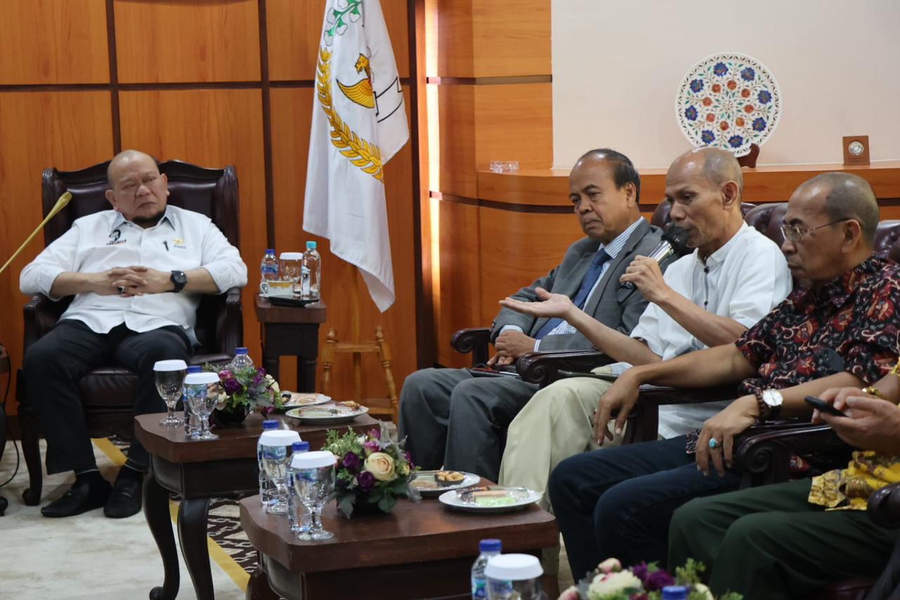 Mereka disambut Ketua DPD RI didampingi anggota DPD RI asal Lampung, Bustami Zainudin dan Staf Khusus Ketua DPD RI Brigjen Pol Amostian dan Togar M Nero. Hadir juga ekonom Ichsanuddin Noorsy dan pegiat Konstitusi dr Zulkifli S Ekomei.