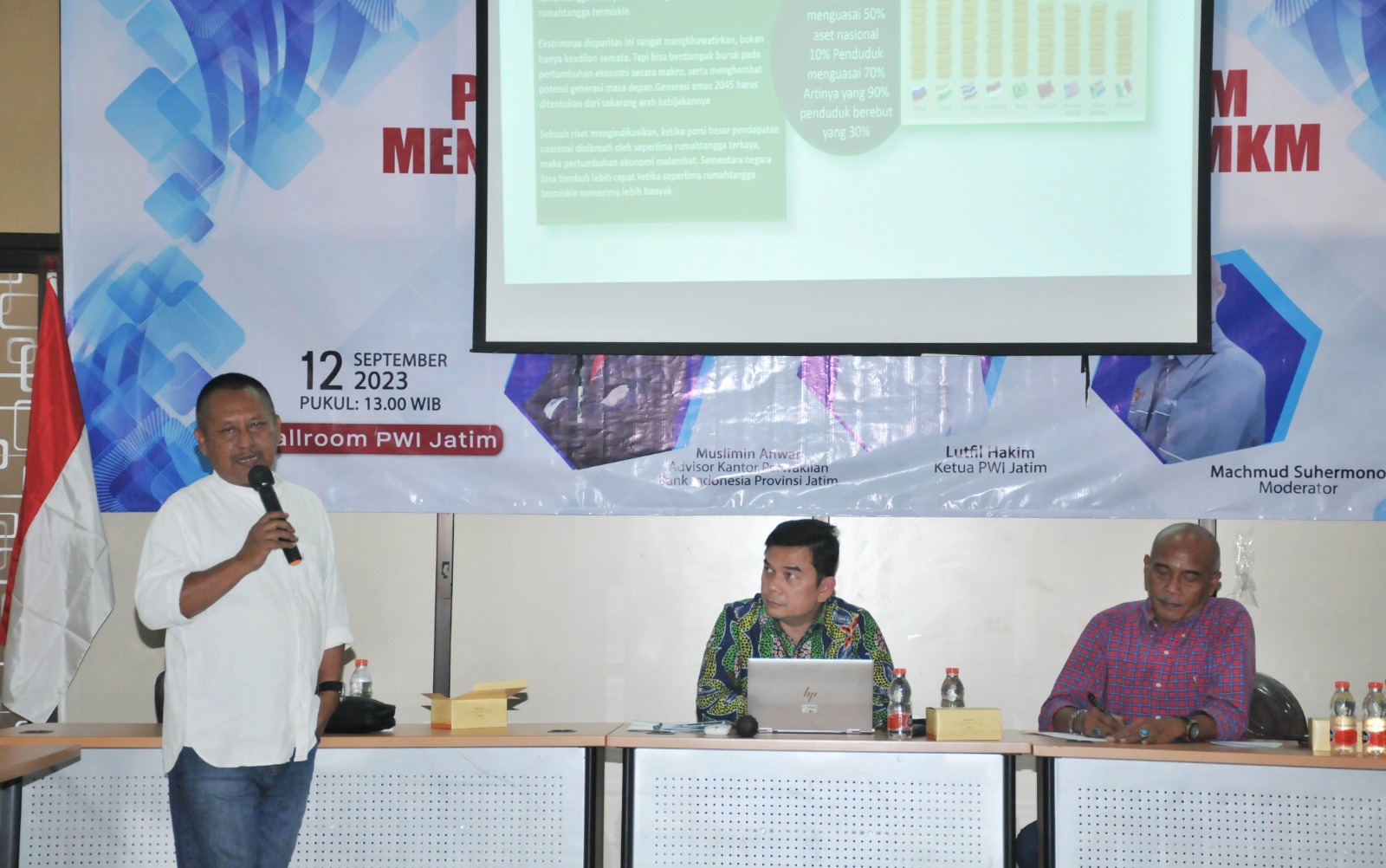 Ketua PWI Jatim Lutfil Hakim dalam kesempatan tersebut mengatakan, sampai saat ini sektor UMKM masih mengalami sedikit ketimpangan perhatian dari pemangku kebijakan terutama dalam porsi kredit dibanding dengan korporasi besar.