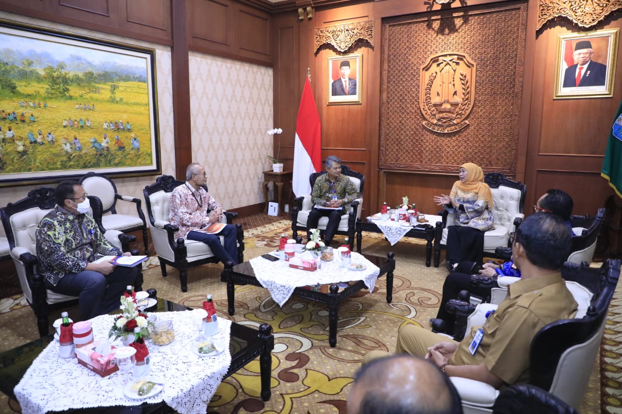 Dalam pertemuan ini, turut hadir Kepala Dinas Perindustrian dan Perdagangan Prov Jatim, Iwan, Deputy Kepala BI Jatim, Riski Wimanda dan Kepala Divisi Implementasi KEKDA Dadal Angkoro. (KS-5)