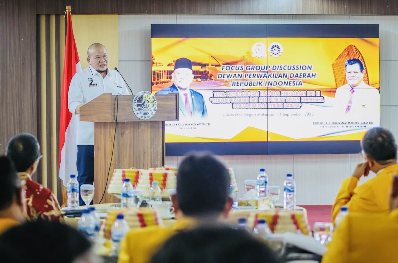 Hal tersebut ditegaskan Senator asal Jawa Timur itu saat menjadi Keynote Speech pada Focus Group Discussion (FGD) dengan tema "Membedah Proposal Kenegaraan DPD RI Menyempurnakan dan Memperkuat Sistem Bernegara Sesuai Rumusan Pendiri Bangsa" di Universitas Negeri Makassar (UNM), Kamis (14/9/2023).