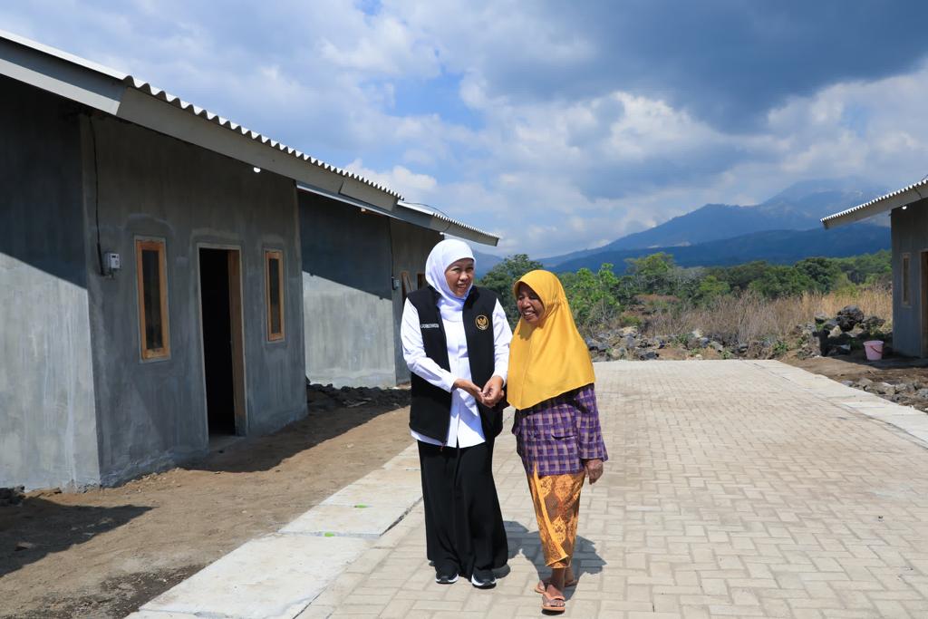 Setelah peresmian, Khofifah menyempatkan diri meninjau rumah-rumah yang akan dijadikan hunian tetap. Tak lupa, dirinya juga turut menyapa warga.