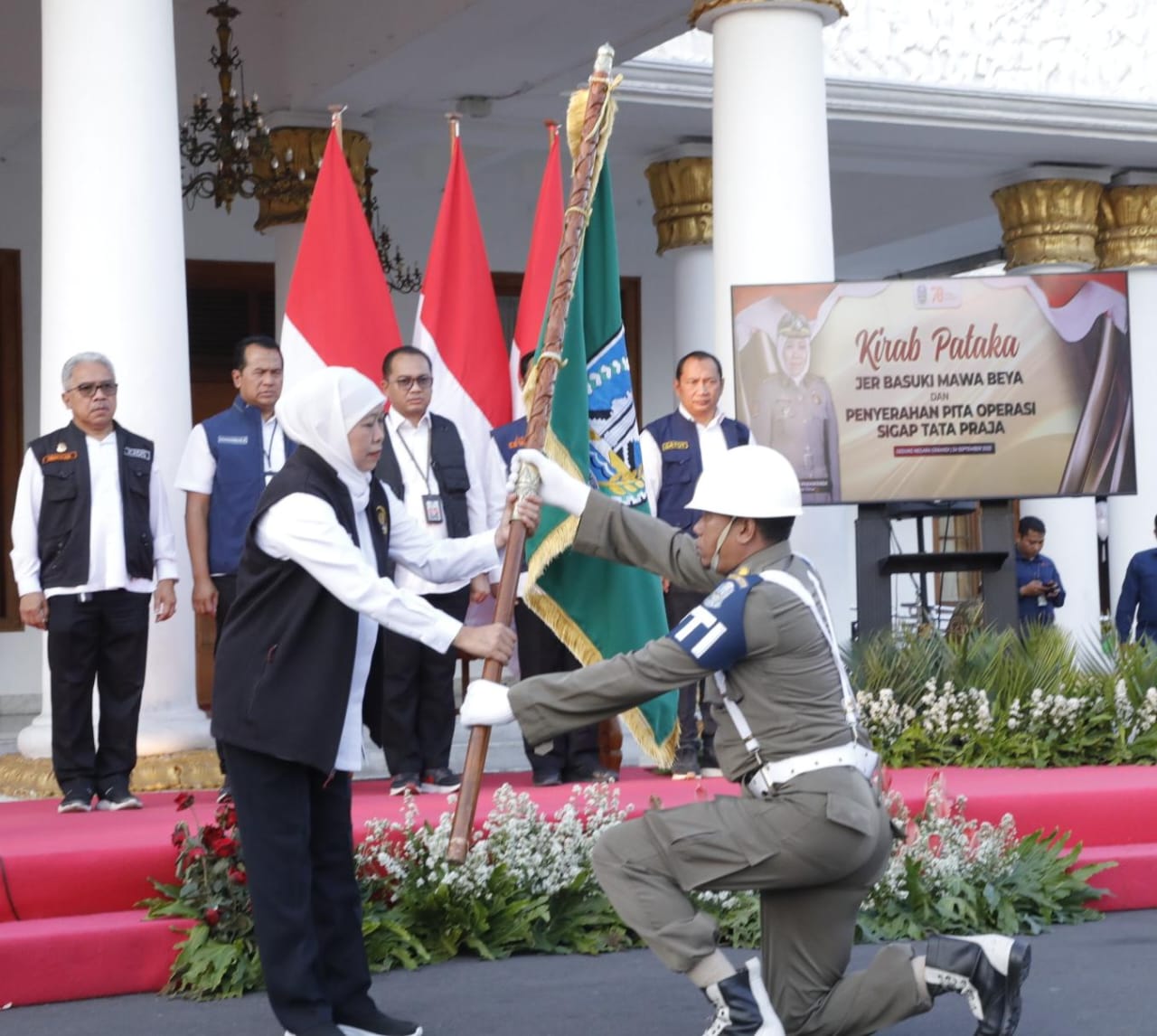 Rangkaian Peringatan Hari Jadi ke-78 Provinsi Jatim, Berangkatkan Kirab Pataka Jer Basuki Mawa Beya