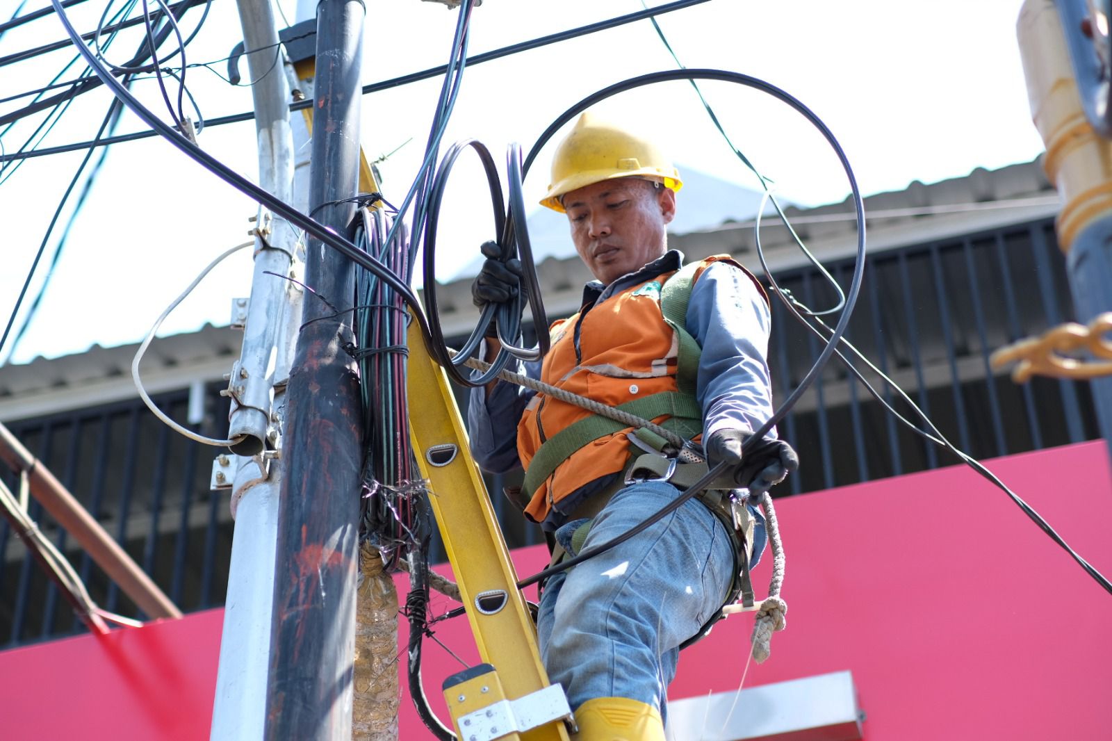 “Kami sudah petakan di mana saja kabel-kabel kami yang melalui tiang PLN, kemudian kami jadikan satu, kami ikat sehingga rapi. Dengan rapi ini tentunya kabelnya tidak mudah terganggu sehingga kuat dan cantik dipandang serta tidak membahayakan masyarakat maupun pekerja,” ujar Rory.