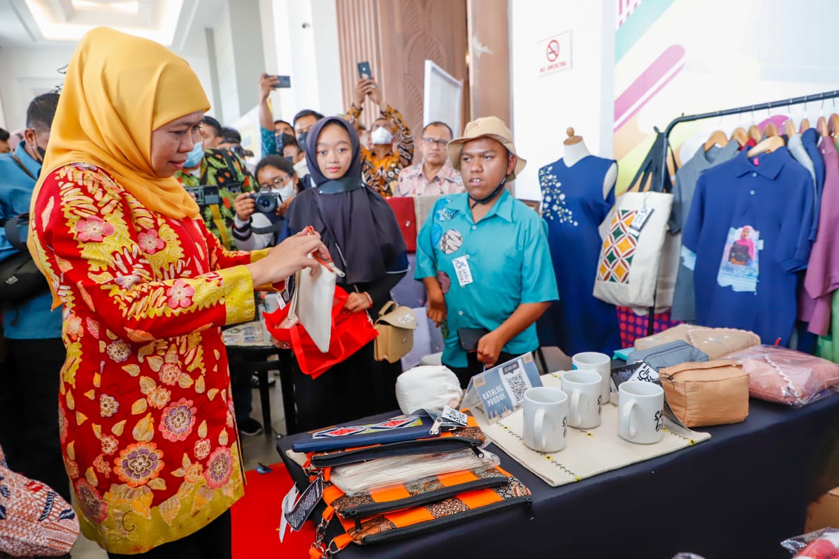 Gubernur Khofifah menegaskan, penguatan sektor UMKM termasuk di dalamnya kalangan disabilitas sangat penting dilakukan. Hal ini karena kontribusi Koperasi dan UMKM terhadap PDRB Jatim sangat besar yaitu mencapai 58,36 persen.