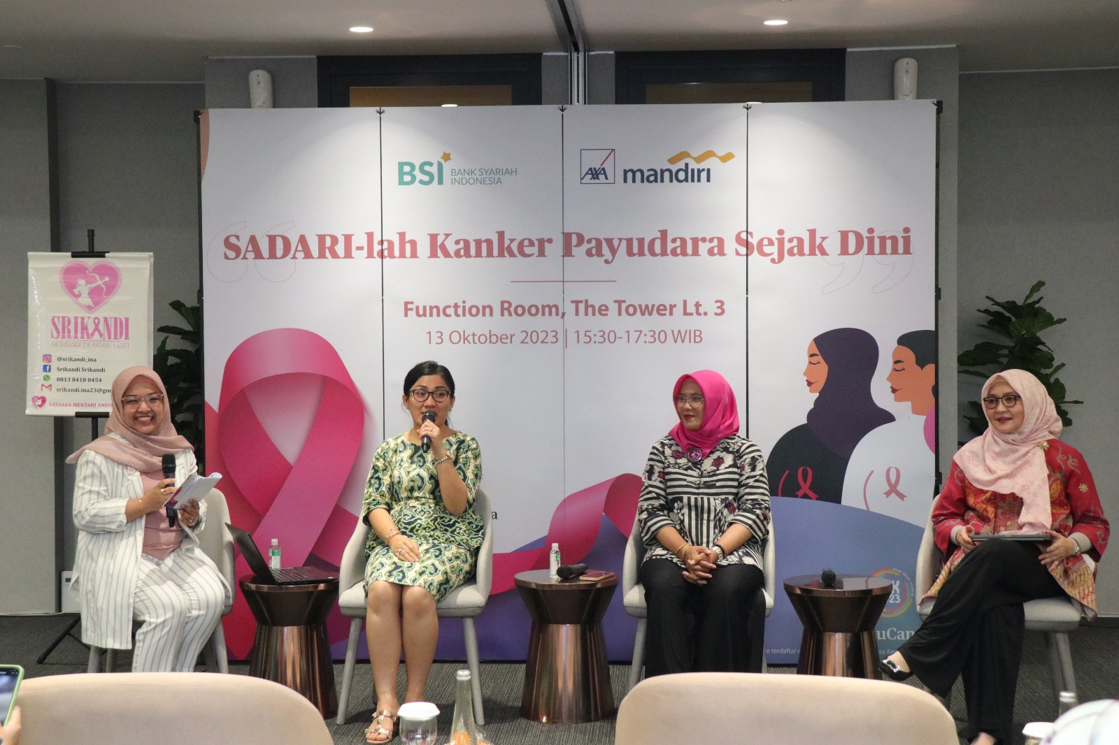 KANALSATU — Bertepatan dengan Bulan Kesadaran Kanker Payudara, PT AXA Mandiri Financial Services (AXA Mandiri) menggelar talkshow bertajuk “Sadari-lah Kanker Payudara Sejak Dini” di kantor pusat Bank Syariah Indonesia (BSI) di Jakarta.