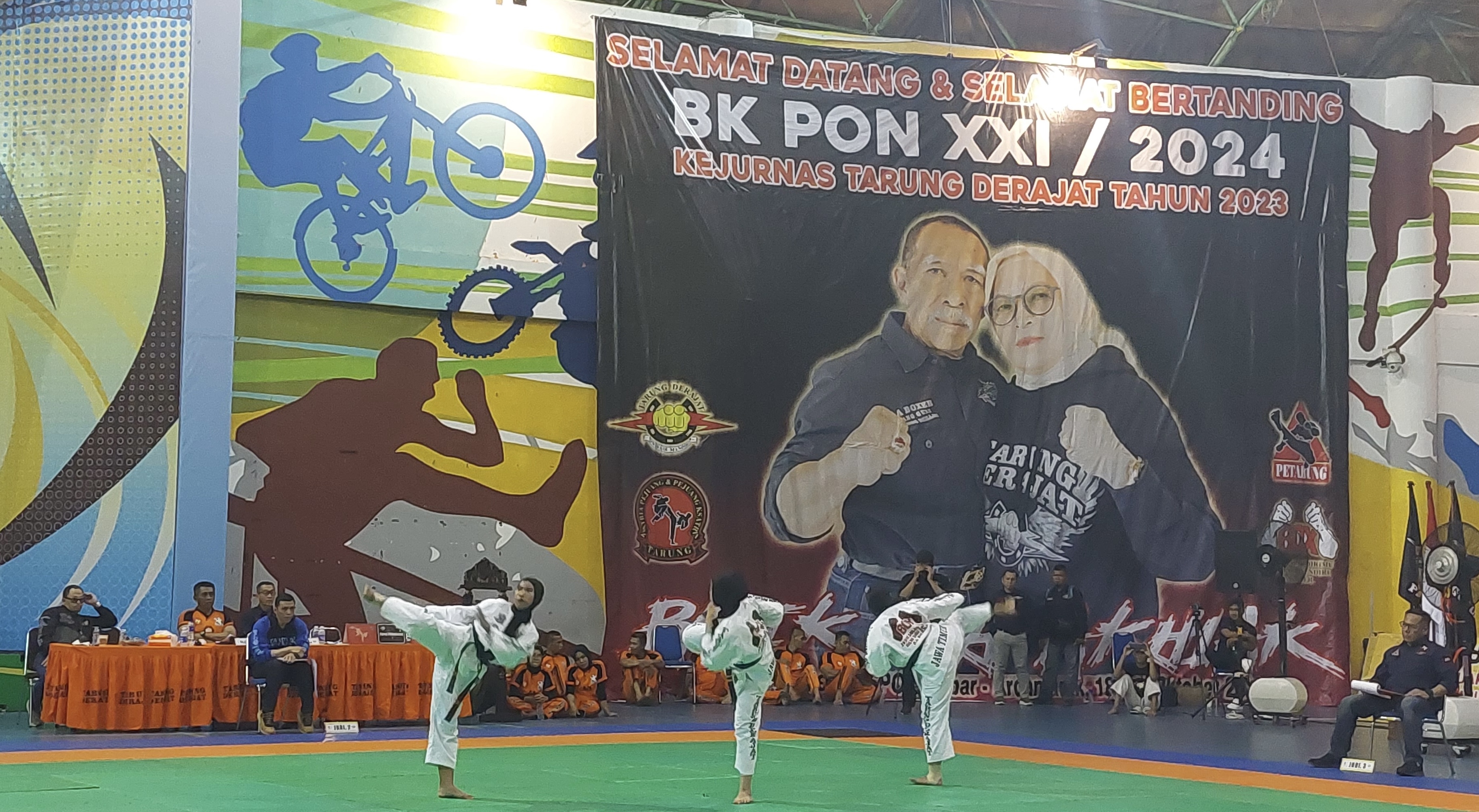 KANALSATU – Hari pertama, Babak Kualifikasi Pekan Olahraga Nasional (BK PON) XXI/2024 Kejurnas Tarung Derajat, petarung Jawa Timur (Jatim) lolos 4 atlet dari 6 yang diturunkan. BK PON Tarung Derajat yang digelar 19 – 22 Oktober di GOR Arcamanik-Bandung, diikuti 23 Pengprov Kodrat se Indonesia.
