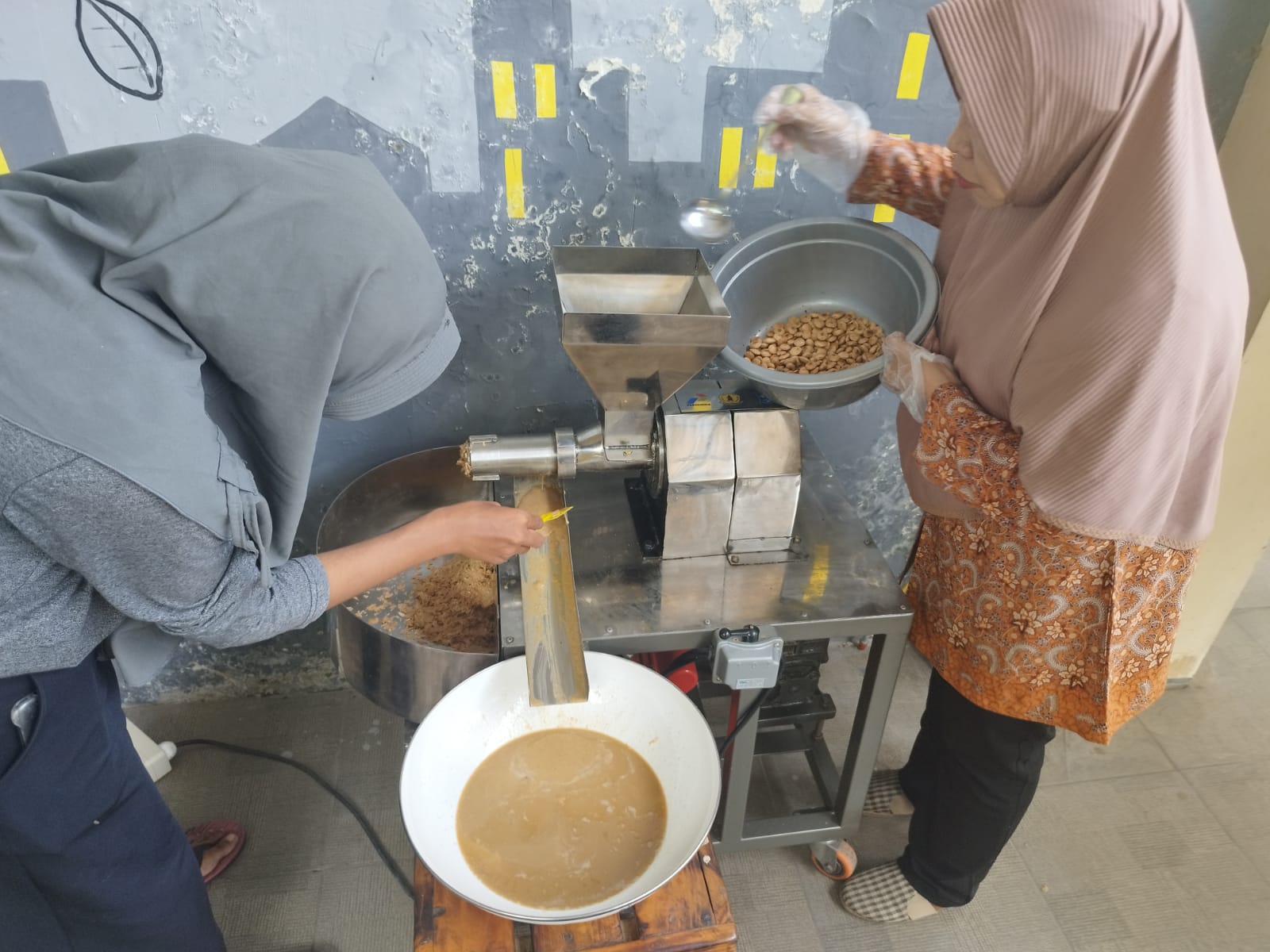 Sementara Lesly Ikawati yang saat itu mendampingi Yana-sapaan akrab Siti Muchayanah bertugas menyisihkan ampas hasil perasaan agar prosesnya menjadi lebih lancar. Air hasil perasaan masih berwarna coklat. Dikatakan Lesly, setidaknya dibutuhkan waktu sampai dua minggu sebelum ampas yang masih terkandung dalam cairan minyak tersebut benar-benar mengendap dan minyak menjadi menjadi benar-benar bening.
