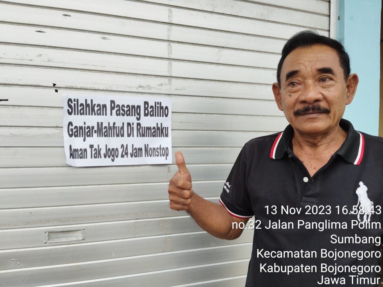 Pada foto yang diunggah @yusuf_dumdum, terdapat gambar bertuliskan ‘silakan pasang baliho Ganjar di rumah saya. Biar bukan keluarga pejabat, tidak akan dicopot!!!’. Pada tag lokasi foto tersebut bertuliskan alamat: Sampora, Kecamatan Cilimus, Kabupaten Kuningan, Jawa Barat.