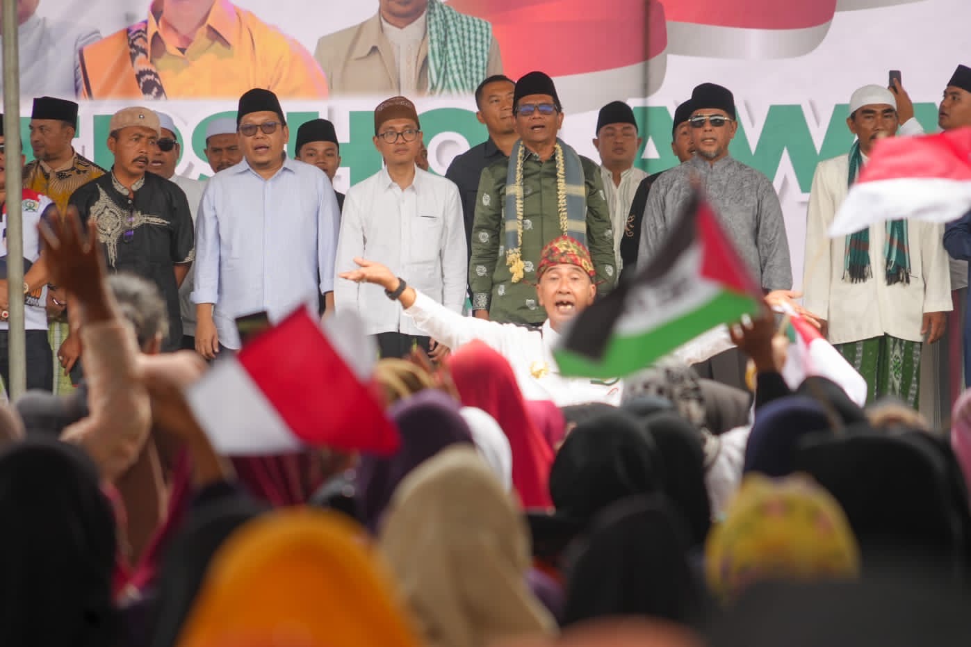 Sementara itu, Mahfud MD mengajak ribuan warga Madura bersholawat Jibril. Massa yang hadir pun ikut bersenandung.
