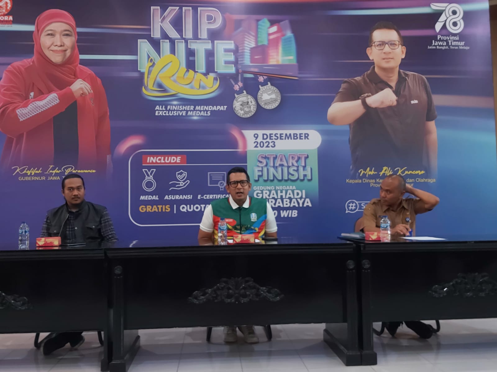 KANALSATU - Masih dalam rangkaian memperingati HUT Provinsi Jawa Timur ke 78, Dinas Pemuda dan Olahraga (Dispora) menggelar KIP Nite Run, yang akan digelar 9 Desember, mendatang.