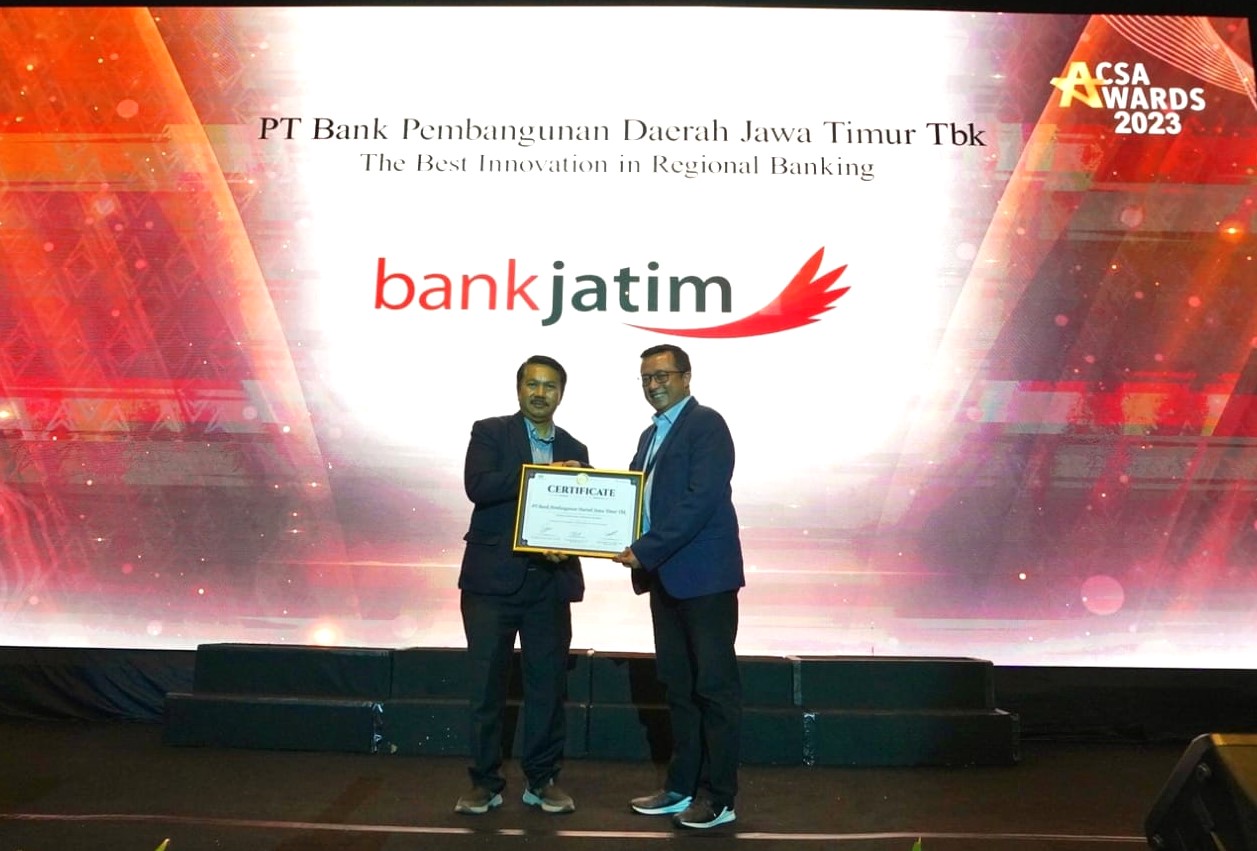 KANALSATU - PT Bank Pembangunan Daerah Jawa Timur Tbk (Bank Jatim) berhasil menjadi pemenang CSA Awards 2023 untuk kategori The Best Innovation in Regional Banking.