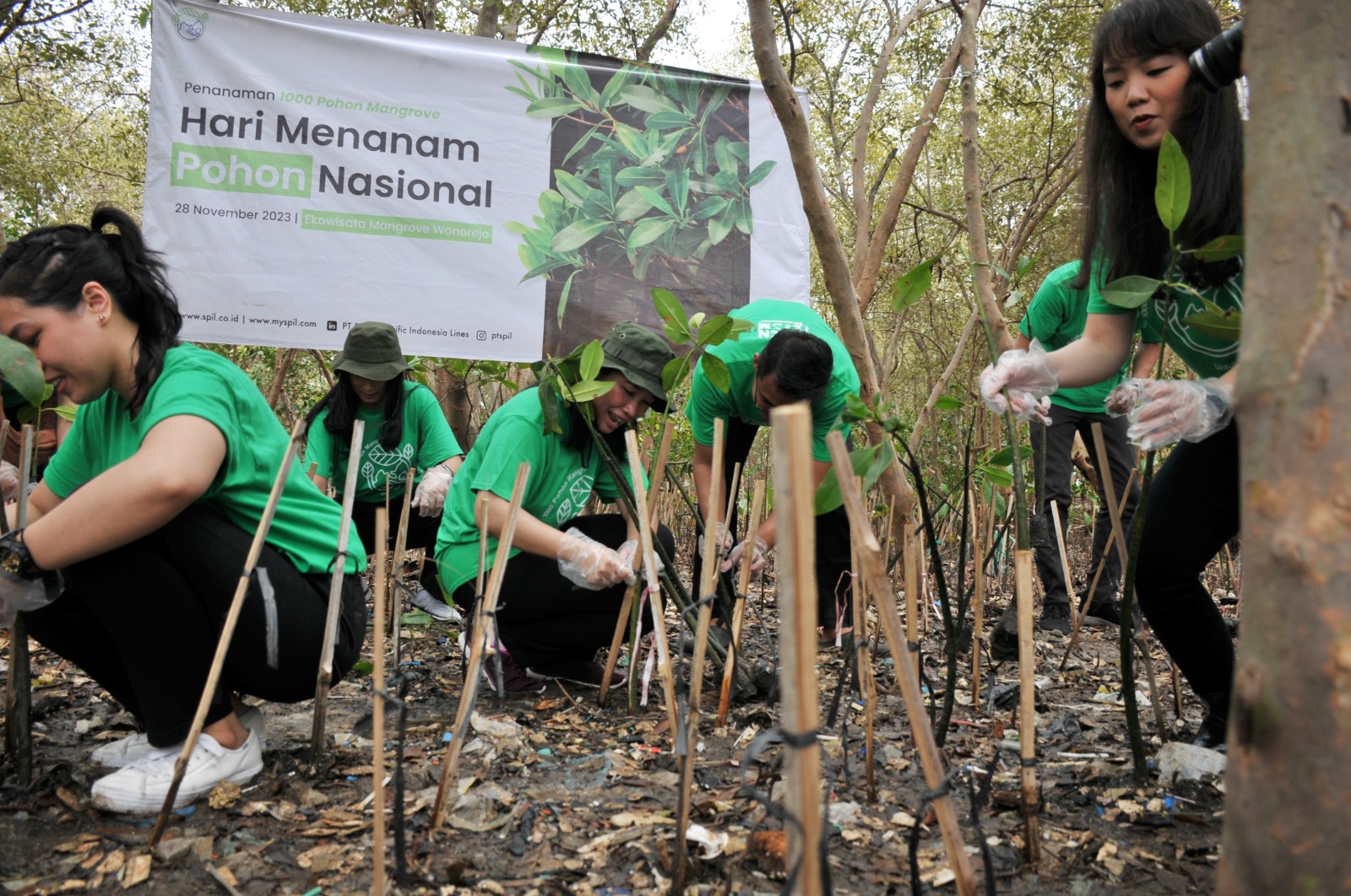 KANALSATU — Dalam rangka memperingati Hari Menanam Pohon Indonesia, PT Salam Pacific Indonesia Lines (SPIL) mengadakan kegiatan menanam 1000 bibit pohon mangrove di Ekowisata Mangrove Wonorejo, Surabaya.