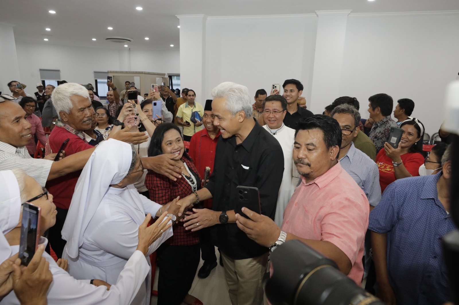 KANALSATU - Ganjar Pranowo, melanjutkan safari politiknya di Kalimantan Timur (Kaltim) dengan bersilaturahmi dengan tokoh agama Katholik di Katedral Samarinda, Rabu (6/12/2023).