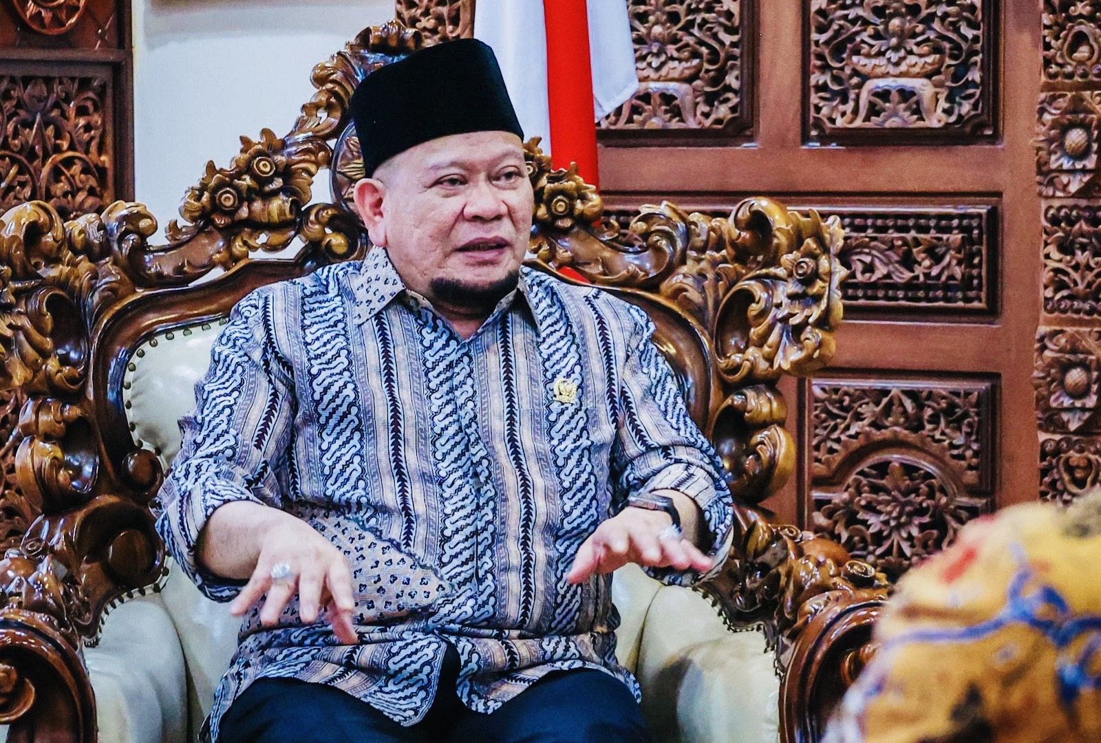 “Kita sudah punya sistem asli, pemilihan mandataris MPR melalui wakil yang utuh, alias penjelmaan rakyat, sehingga yang bermusyawarah itu seharusnya para hikmat. Tapi karena praktek penyimpangan yang terjadi di era Orde Baru, sistem rumusan pendiri bangsa itu kita buang, dan kita ganti dengan sistem barat yang individualis dan liberal, akibatnya kita menjadi bangsa lain, bangsa yang tercerabut dari akarnya,” urai LaNyalla.