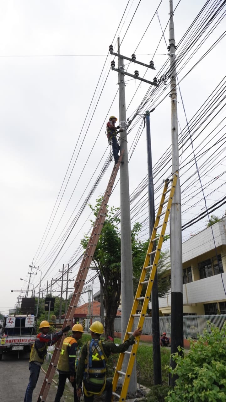 Tim pemeliharaan yang diterjunkan sebanyak 5 orang yang terdiri dari 1 pengawas pekerjaan dan 1 petugas pengawas K3 dengan tools standar dan alat pelindung diri lengkap sesuai prosedur Sistem Manajemen Keselamatan dan Kesehatan Kerja (SMK3).