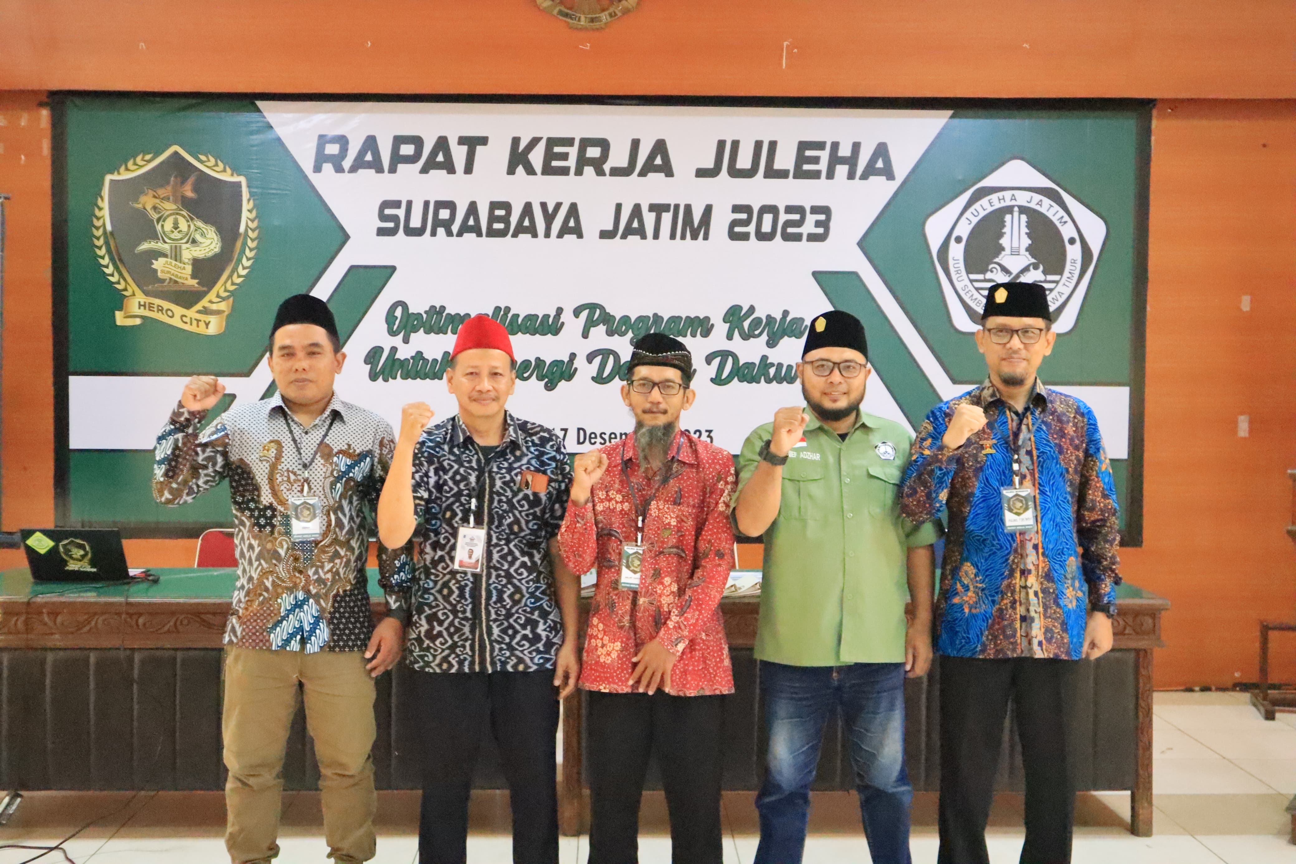 KANALSATU – Juru Sembelih Halal (Juleha) Kota Surabaya, memasuki tahun ke dua melaksanakan Rapat Kerja (Raker) 2023. Raker dihadiri seluruh pengurus dan anggota, membahas dan menguatkan program Juleha ke depan untuk dilaksanakan pada tahun 2024.