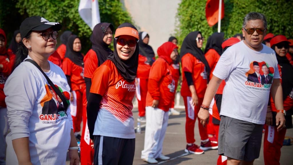 Selama berlari, istri calon Presiden RI 2024 Ganjar Pranowo yang didampingi rekan satu timnya tak henti menyapa pelari. Sesekali Ia pun tampak ikut heboh saat melewati titik cheering dari warga.