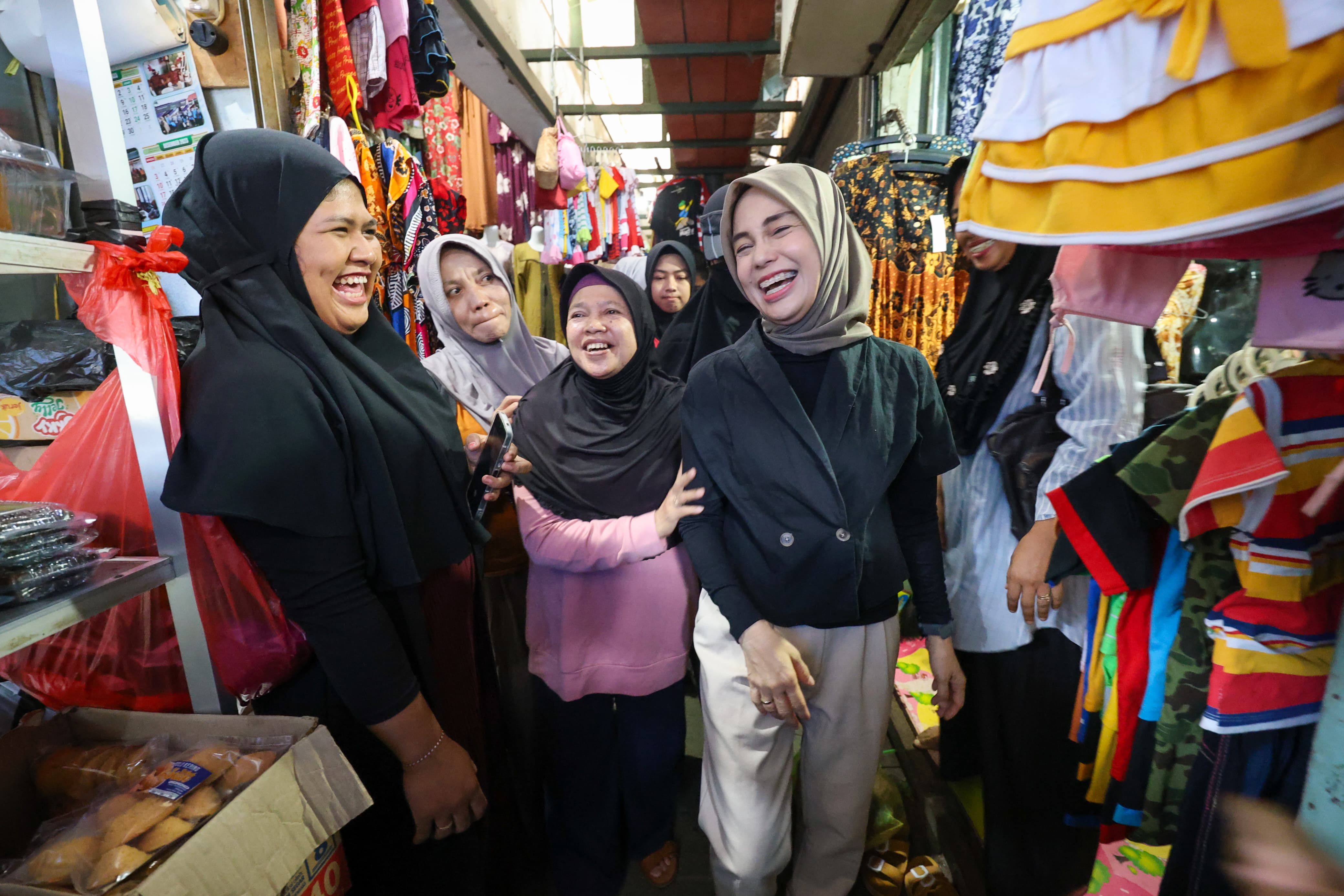 "Jalan-jalan ke pasar, pulangnya beli kain. Kalau sudah ada pak Ganjar, buat apa pilih yang lain," ucap pedagang ibu-ibu sambil memeluk dan mencium Atiqoh.
