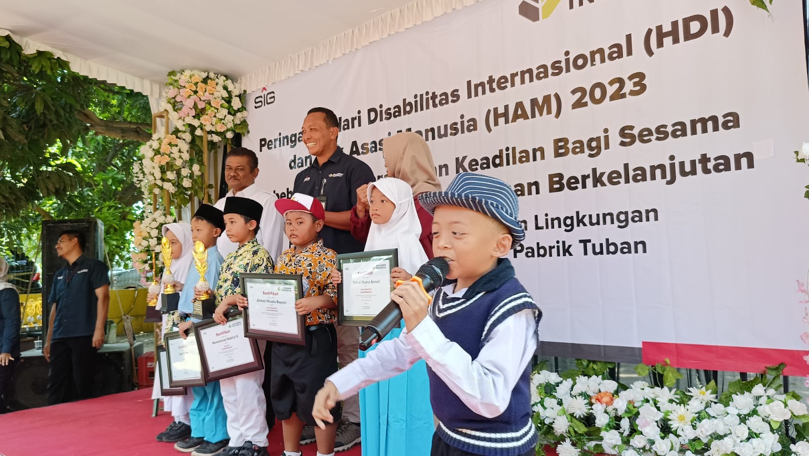 KANALSATU - PT Solusi Bangun Indonesia Tbk (SBI) Pabrik Tuban bersama Dinas Sosial Kabupaten Tuban dan Forum Disabilitas Tuban menggelar Peringatan Hari Disabilitas Internasional (HDI) dan Hak Asasi Manusia (HAM), Rabu (20/12/2023).