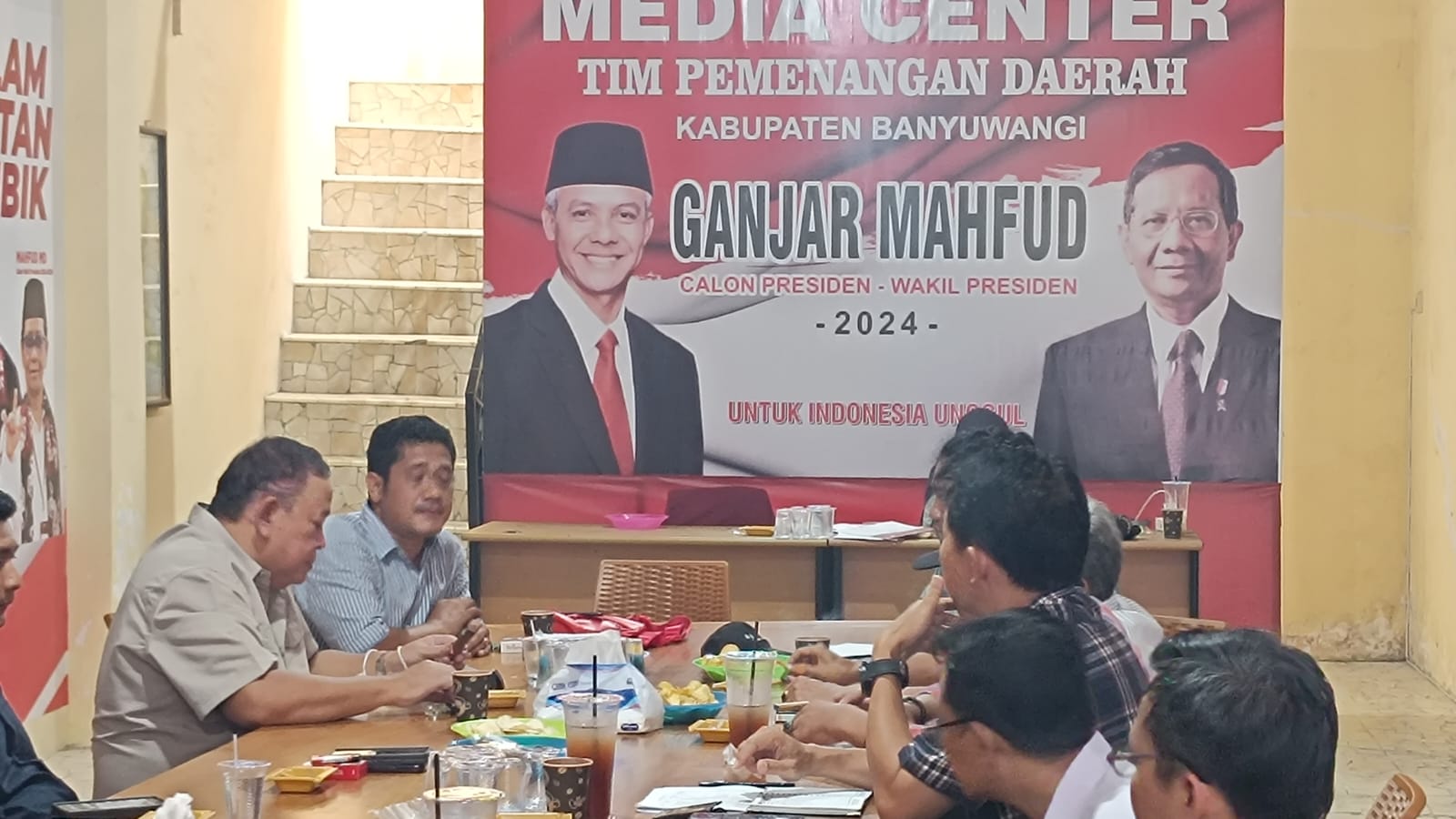 Deputi Kinetik Teritorial TPN Ganjar Pranowo-Mahfud MD, Luki Hermawan, datangi posko TPD Banyuwangi pada 28 Desember 2023, jelang rencana kedatangan Mahfud MD pada 29 Desember 2023.