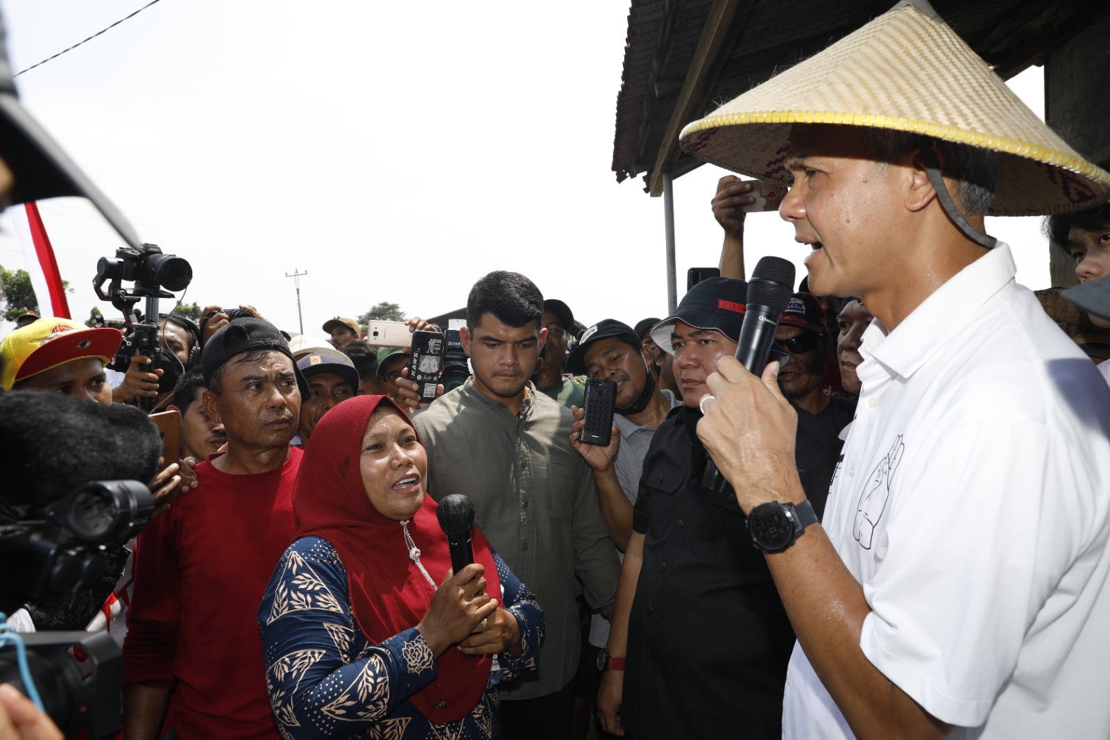KANALSATU - Seribu lebih petani di Kabupaten Demak, antusias menyambut kedatangan Ganjar Pranowo di Desa Wilalung, Kecamatan Gajah, Demak, Selasa (2/1/2024). Capres nomor urut 3 itu, berkomitmen akan menambah kuota pupuk khusus petani untuk mengatasi kelangkaan saat ini. Ganjar, tiba di lokasi disambut petani dengan memberikan caping. Selanjutnya, mantan Gubernur Jawa Tengah itu melayani permintaan salaman dan berswafoto, untuk kemudian berdialog dengan petani. Ada seribu lebih, petani yang antusias mengikuti dialog. Mereka curhat ke Ganjar, mulai dari air irigasi, kelangkaan pupuk hingga utang kredit usaha rakyat (KUR) untuk modal tanam. Menurut Ganjar, pupuk sudah menjadi kebutuhan pokok petani dalam berproduksi. Sehingga, pemerintah harus menyediakan pupuk sesuai dengan kuota yang dibutuhkan petani. "Maka Ganjar-Mahfud berkomitmen negara harus memenuhi kebutuhan pupuk petani," ujarnya. Salah satunya, adalah dengan mendirikan pabrik pupuk. Untuk distribusinya, akan dilakukan melalui satu data KTP Sakti. "Biar juga tepat sasaran, nanti pendataan hanya pakai KTP. Ya, KTP Sakti," tuturnya. Dalam kesempatan itu, Ganjar juga menyampaikan soal program pemutihan utang bagi petani. "Kemarin nelayan, nah sekarang ini untuk petani. Kemarin saya buka datanya petani, kita hitung untuk kredit macet kurang lebih angkanya Rp600 miliar," ujar Ganjar. Dari angka itu, menurut Ganjar, bisa dilakukan pemutihan. Sehingga petani merasa terbantu terutama mereka yang mengambil KUR. "Karena petani merasa kesulitan, maka kita akan hapus (pemutihan) yang kurang lebih Rp600 miliar itu," paparnya. Sementara itu, Adi Leo Saputra, salah satu petani mengaku bahwa program Ganjar berpihak pada petani. Baik soal pupuk hingga pemutihan utang. "Kami dukung pak Ganjar sepenuhnya karena programnya bagus untuk petani," tandasnya. (ega)