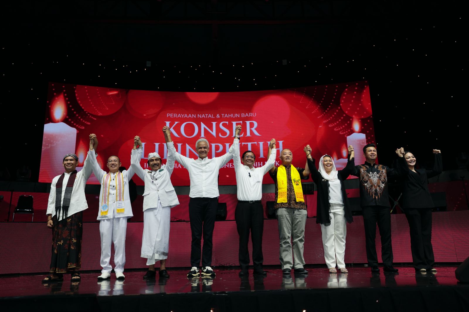 Ganjar Mahfud hadir dalam acara perayaan Nataru dan Konser Lilin Putih, di Balai Sarbini, Jakarta Pusat.