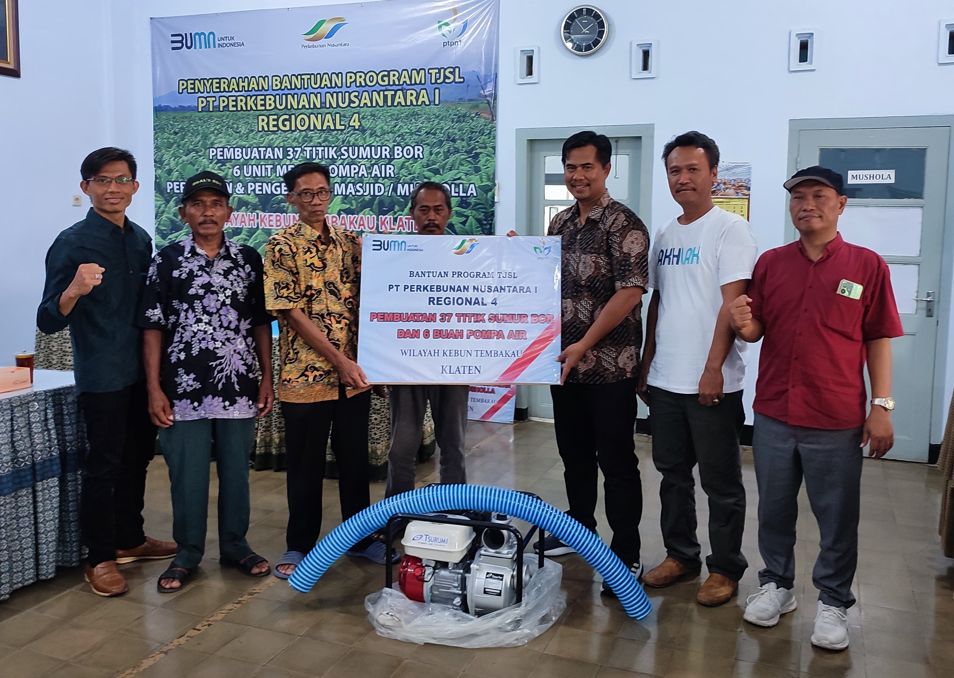 Kali ini TJSL diserahkan dalam bentuk pembuatan sumur bor di 37 titik di sekitar wilayah kerja Kebun Klaten serta pemberian bantuan mesin pompa air untuk 6 desa di Klaten.