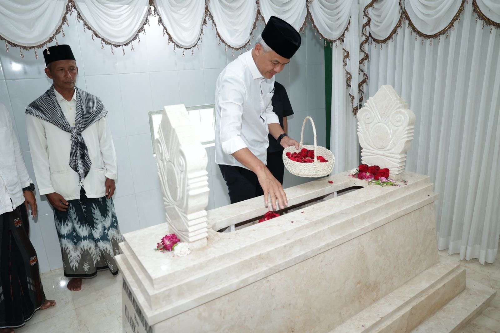 Ini doa bersama dengan Pak Ganjar karena tujuannya ke sini adalah silaturahmi untuk tahu tempat-tempat bersejarah yang bisa melahirkan tokoh-tokoh atau pemimpin bangsa Indonesia, Ini untuk tidurnya Kiai Ageng Besari yang ada di belakang,” paparnya.