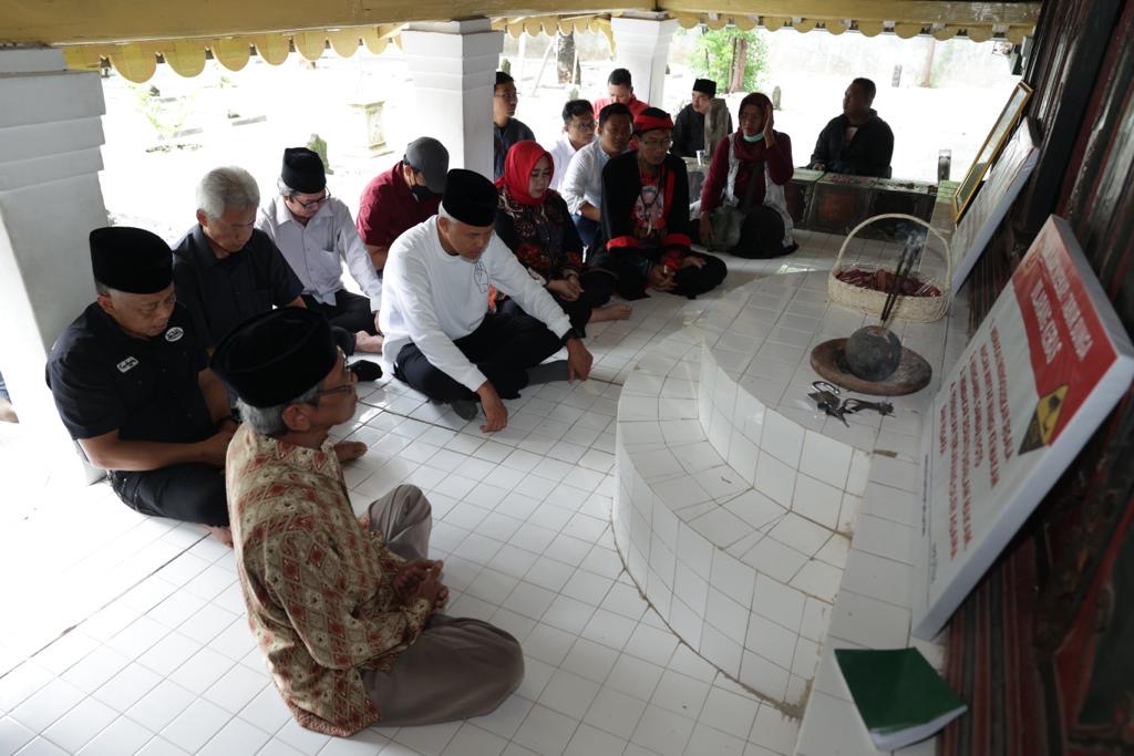 Tiba di lokasi, Ganjar disambut Mbah Nardi, juru kunci makam dan tokoh masyarakat. Saat berjalan menuju makam, Ganjar diserbu pelajar untuk berebut salaman.