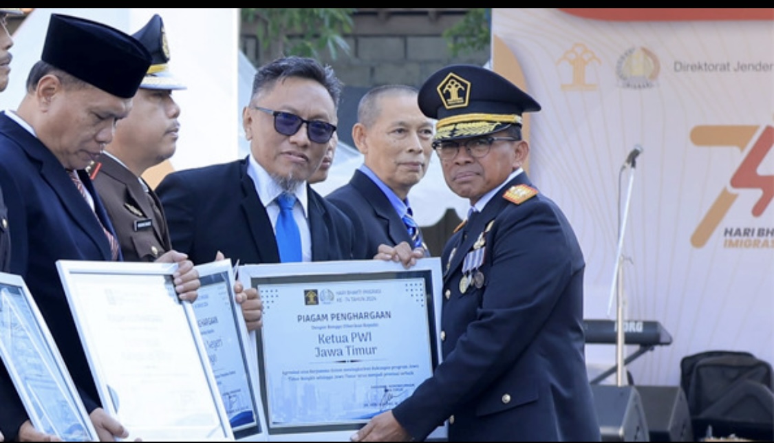 Persatuan Wartawan Indonesia (PWI) Jawa Timur adalah salah satu lembaga yang terpilih mendapatkan apresiasi dan penghargaan saat puncak acara Hari Bhakti Imigrasi (HBI) ke-74 itu.