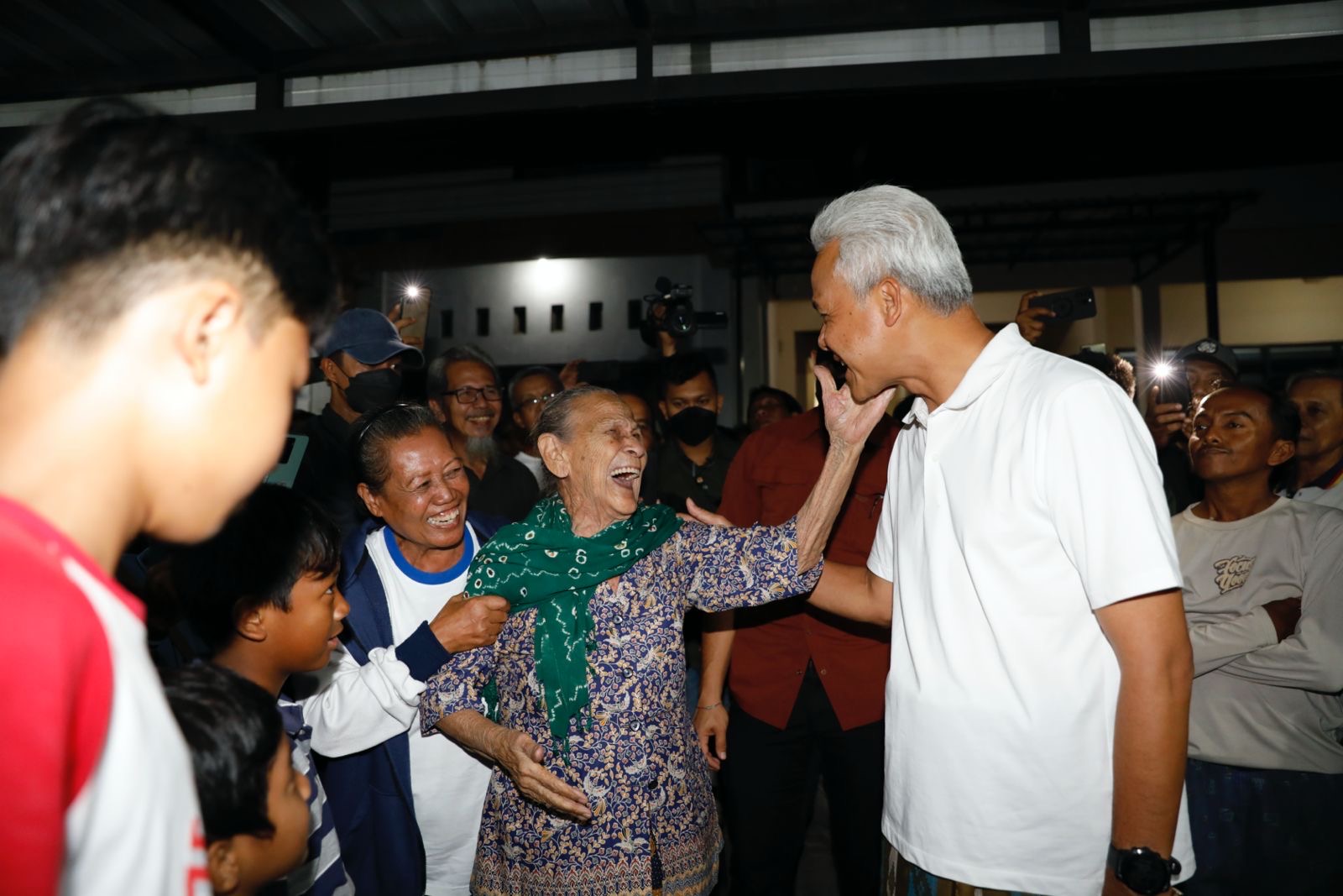 Kedatangan Ganjar, disambut meriah warga sekitar. Mereka memadati jalan gang meminta salaman dan berswafoto. Apalagi Supriadi dan Lisianawati (Goei Lisian) sebagai tuan rumah.