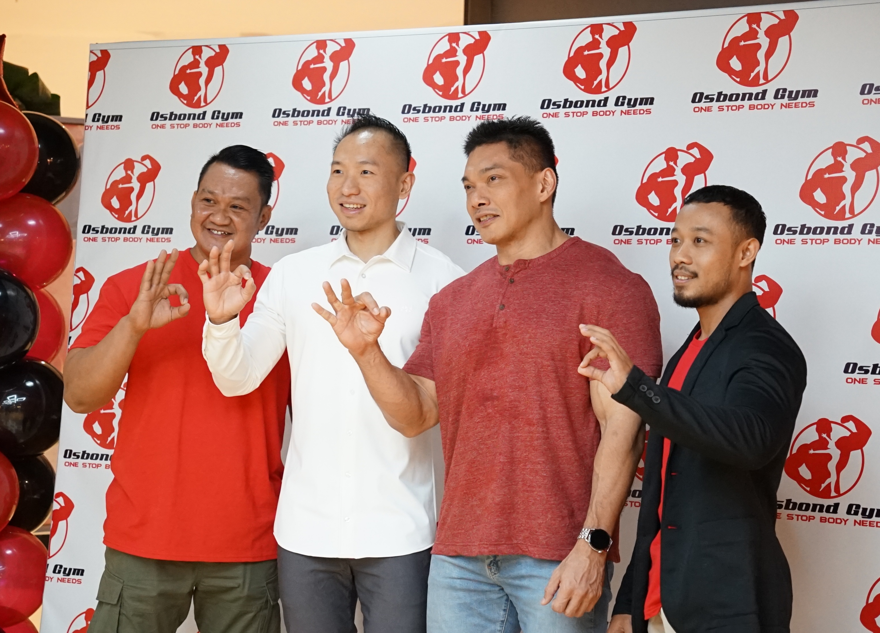 (Kiri-kanan) Fitness Manager Osbond Gym Surabaya, Rizal; Sales Manager Osbond Gym Surabaya, Eko; Owner dan Founder Osbond Gym, Suyudi serta Owner dan Business Manager Osbond Gym Surabaya, Randy saat pembukaan Osbond Gym Surabaya, akhir pekan lalu